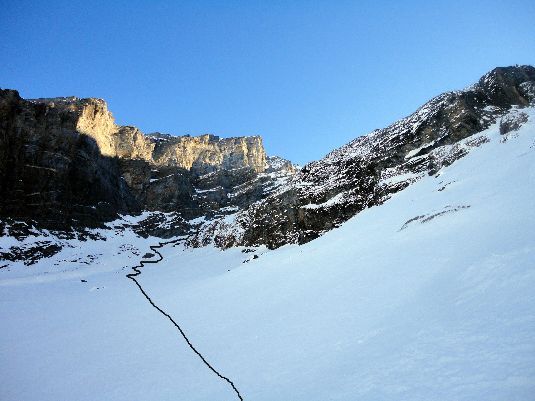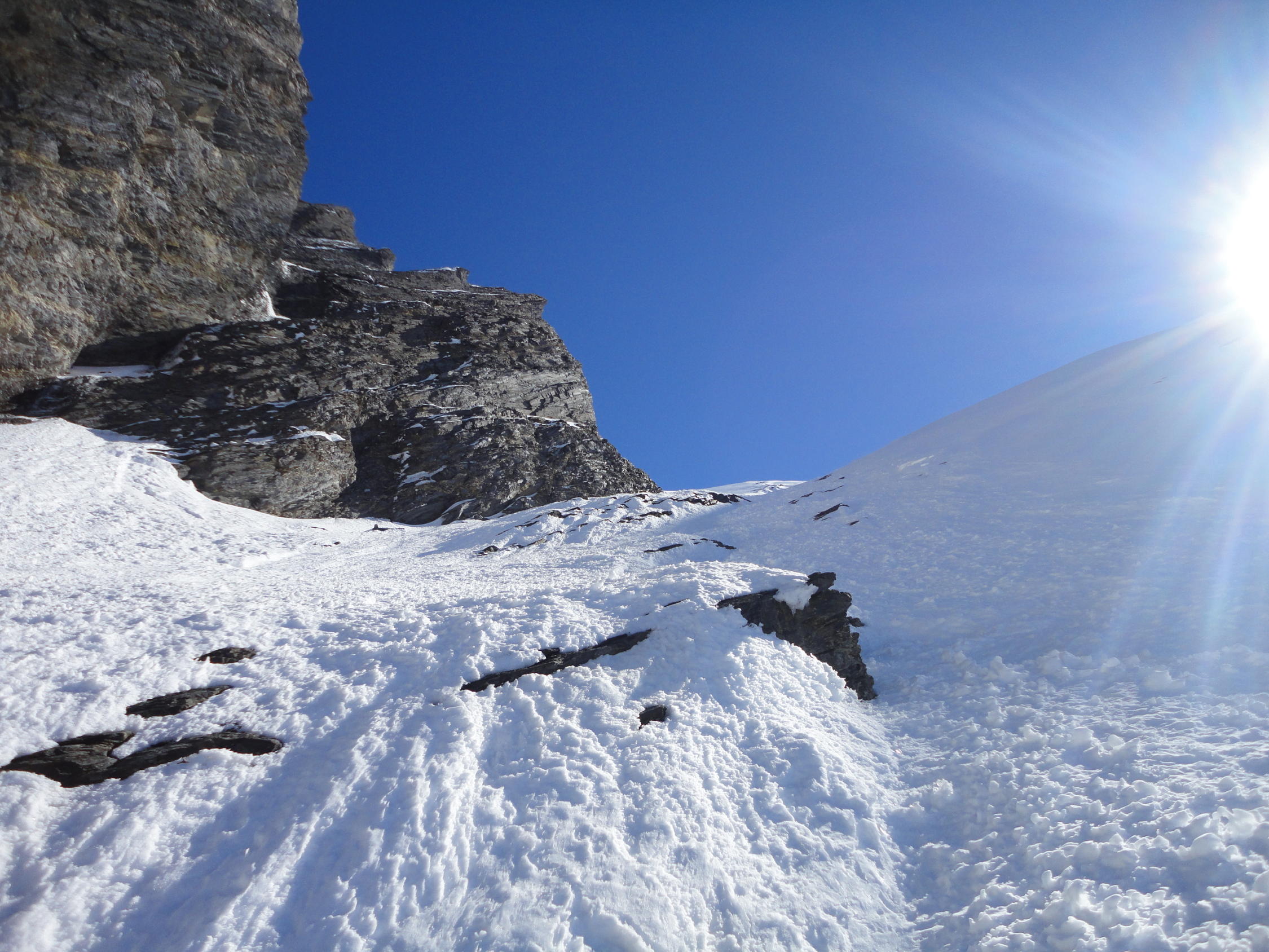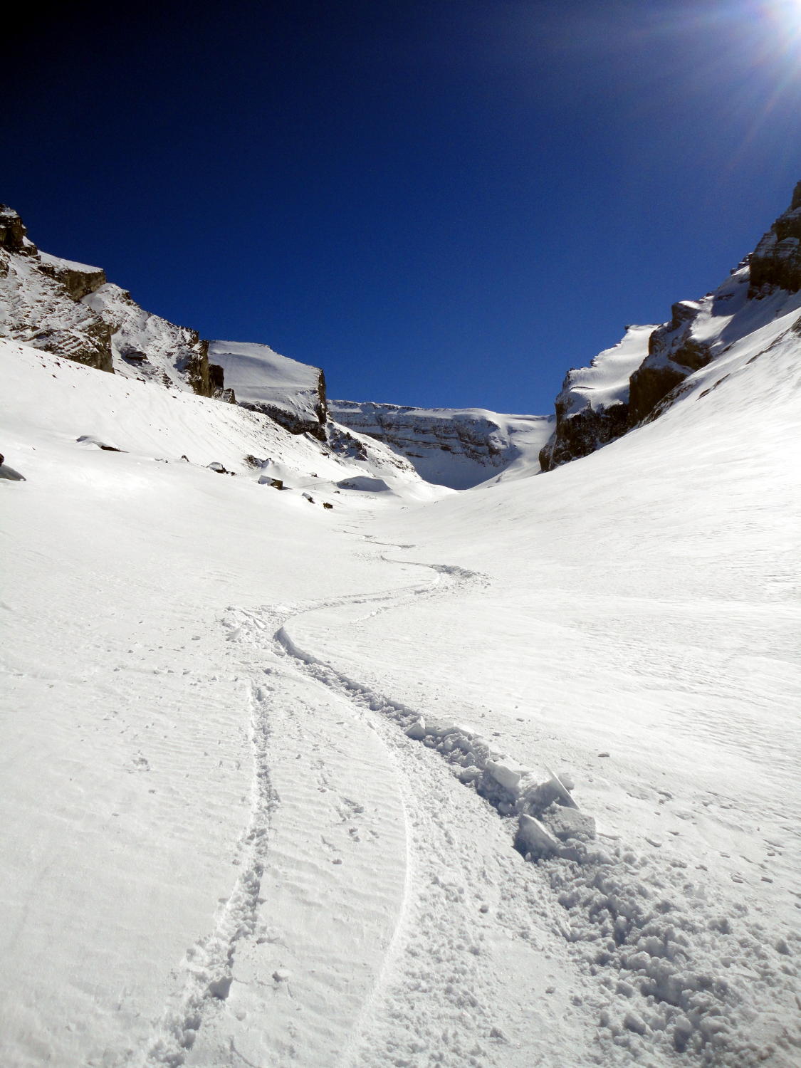 Im Couli war alter Lawinenschnee (Lockerschnee) aber gerade das machtes es super zum Aufsteigen.