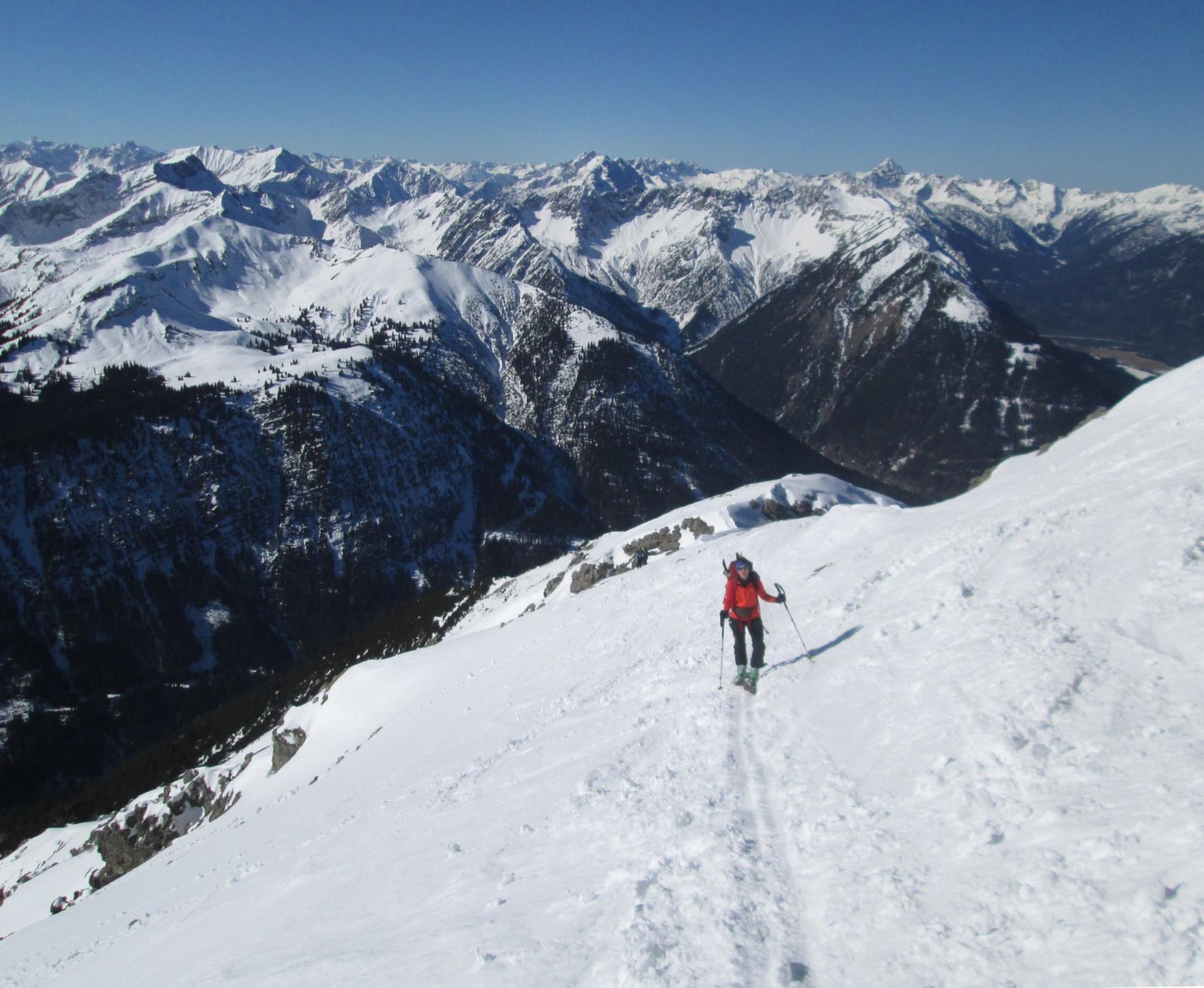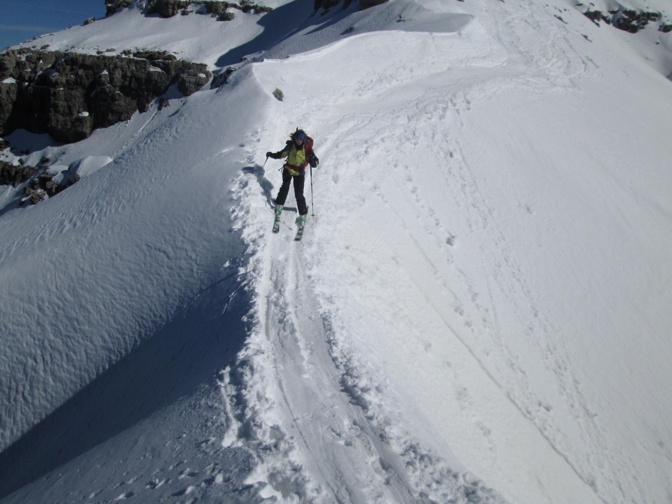Der Gipfelkamm wird bei den aktuellen Temperaturen weiter ausapern und zunehmend Vorsicht bei der Abfahrt erfordern. Ansonsten sicher noch längere Zeit gut machbar. Sichere Verhältnisse erforderlich.