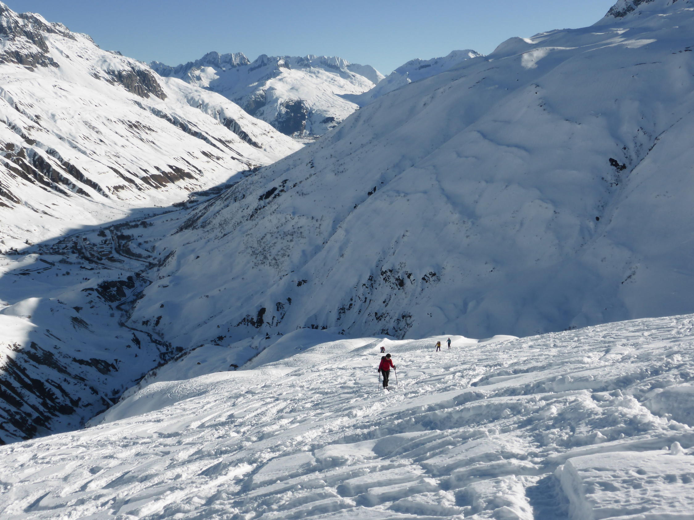 Für die Nordabfahrt sollte der Zeitpunkt nicht zu spät gewählt werden, wegen dem nicht ungefährlichen Gegenaufstieg nach der Brücke zur Furkapassstrasse hinauf.