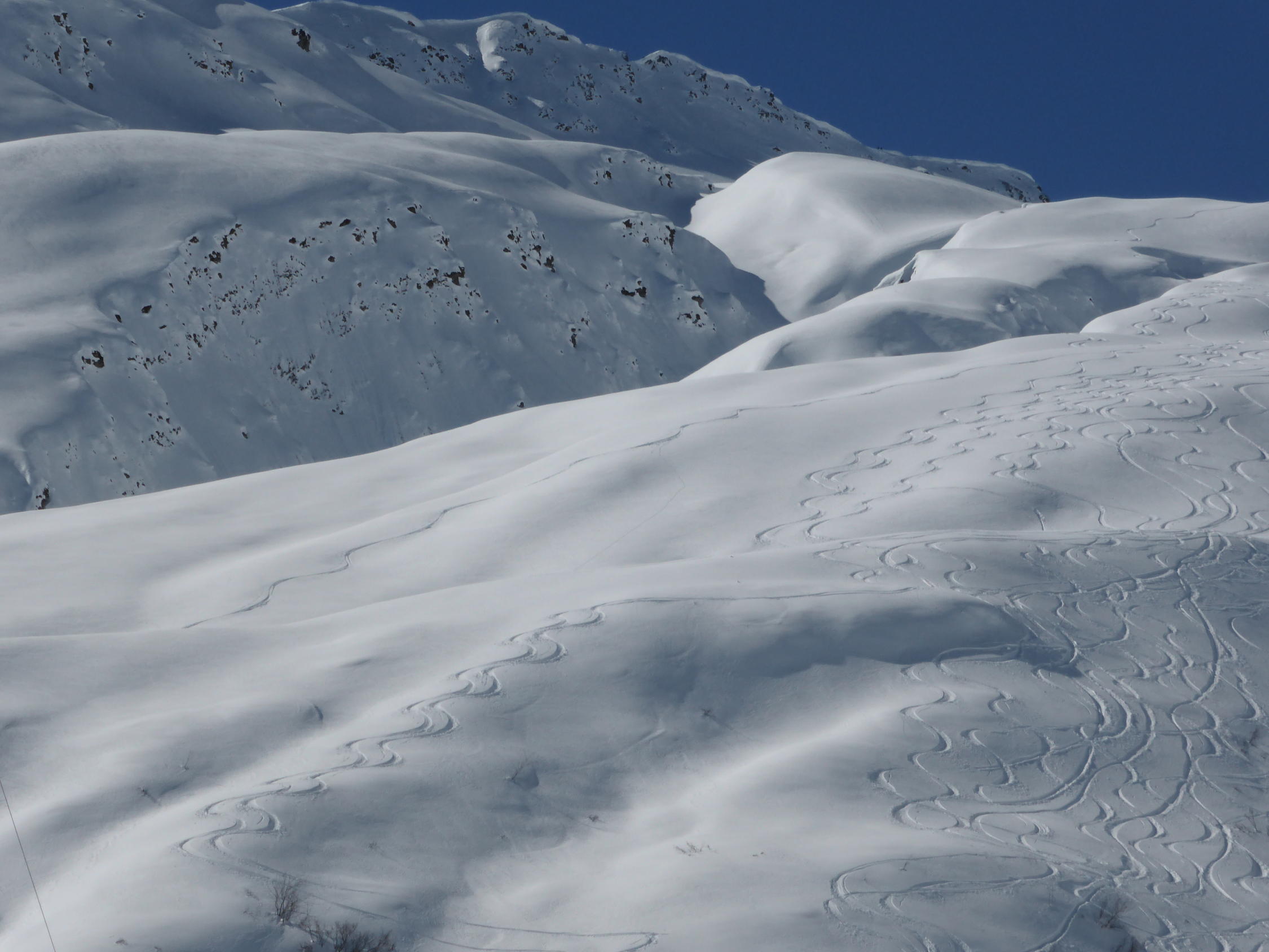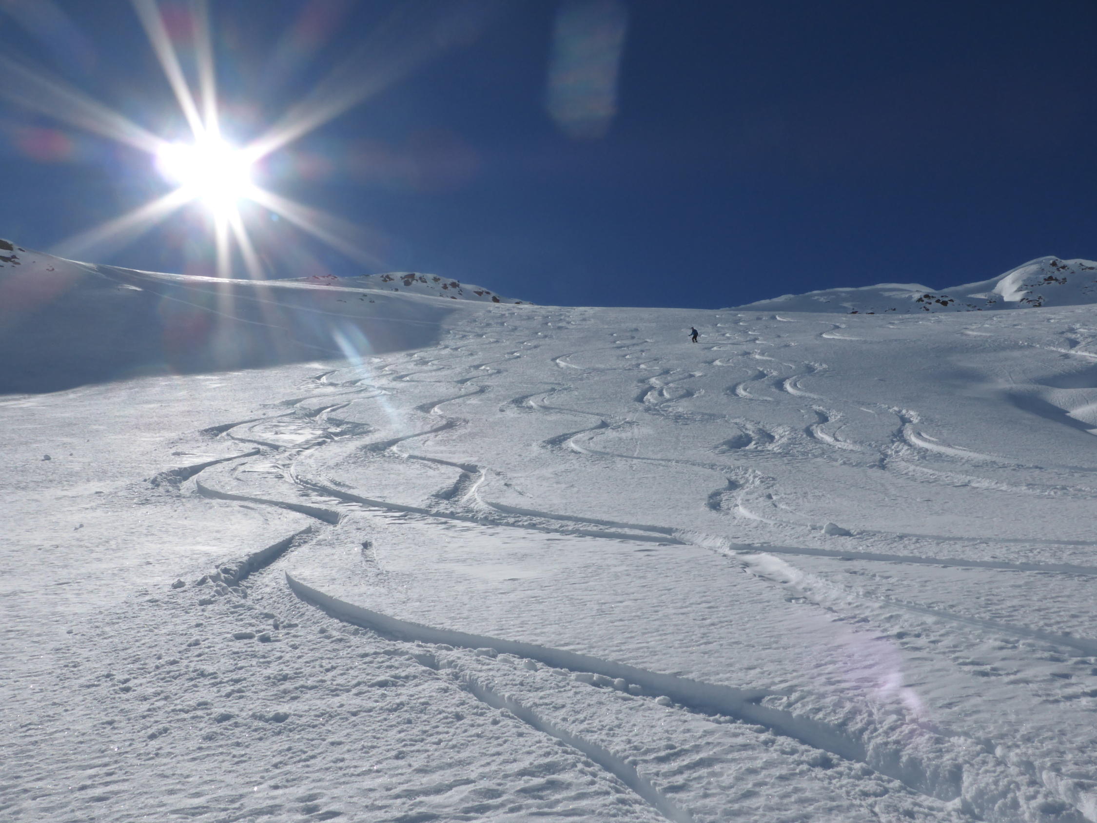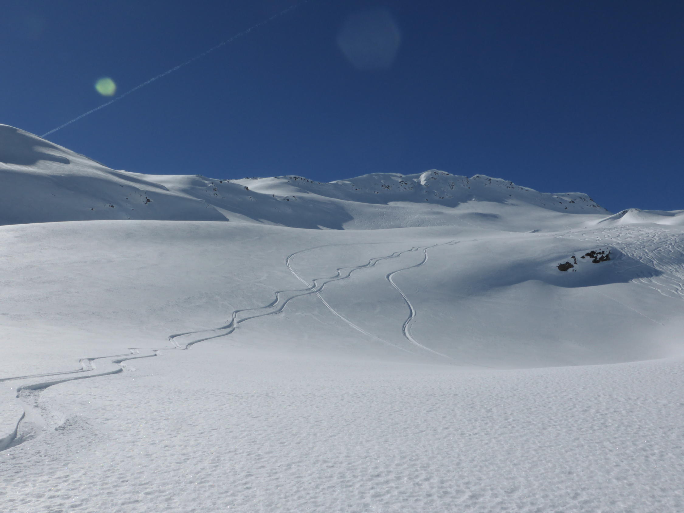 Die Verhältnisse waren auch recht schön gute Spuren zum auslesen. Die Nordabfahrt hat sich natürlich gelohnt.
