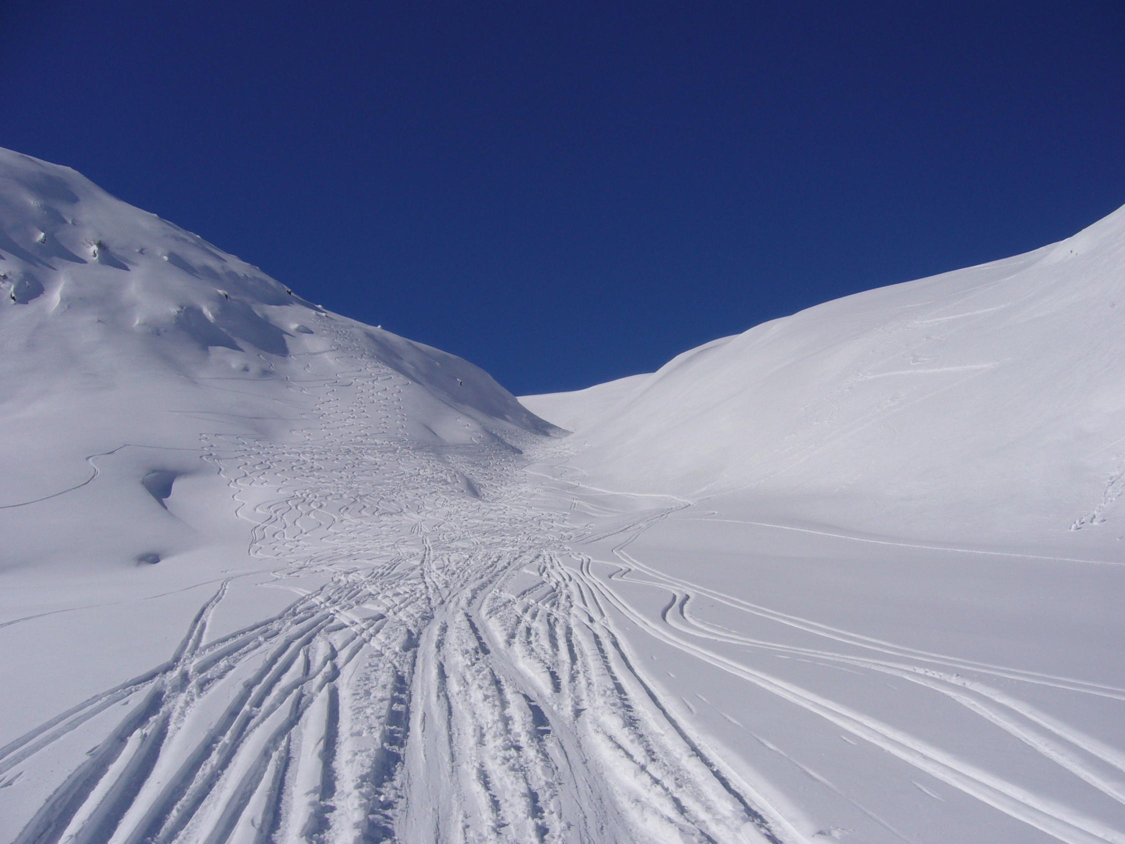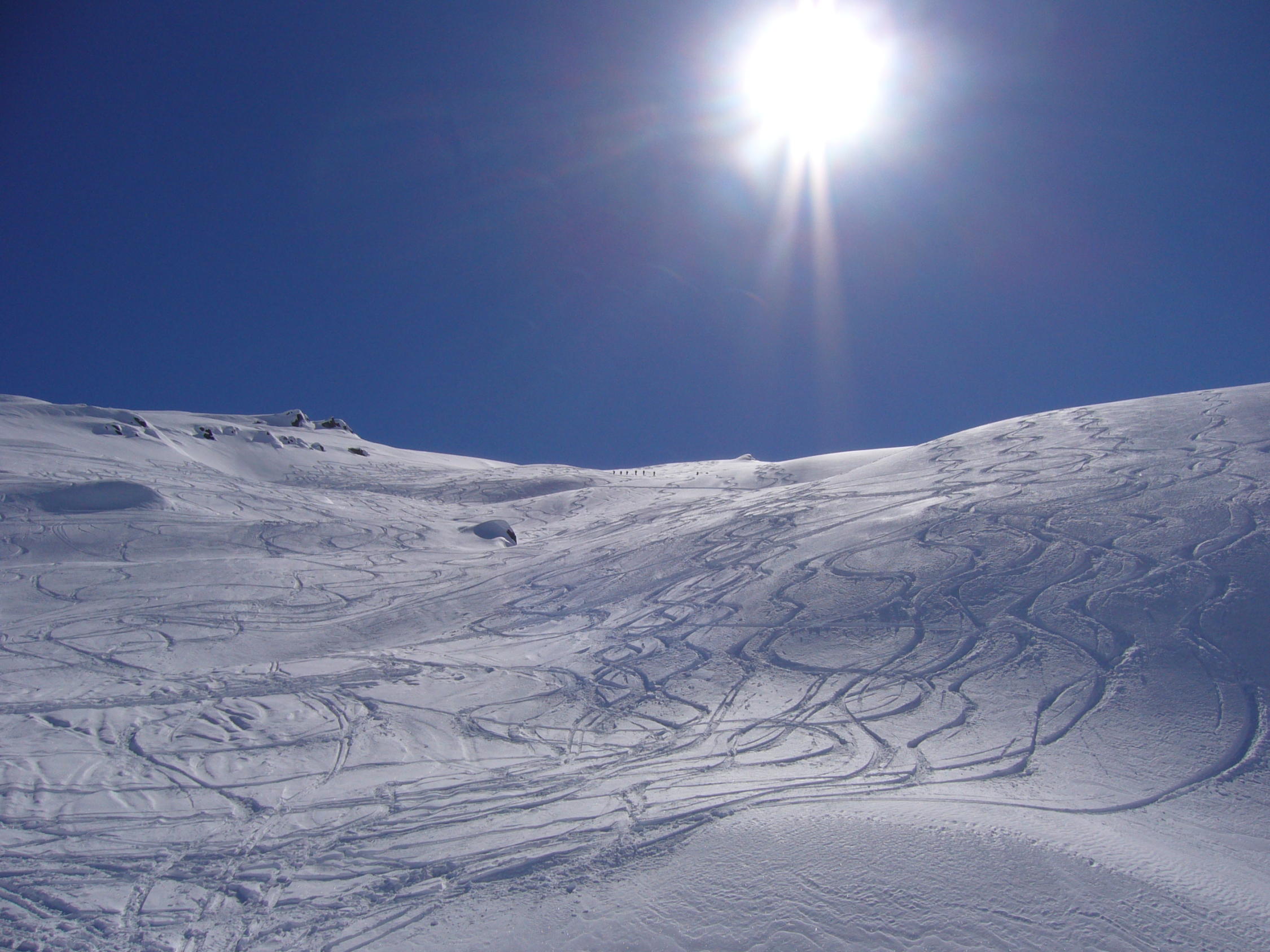 Es hat viel Schnee im Gebiet. Von der Temperatur her wurde es im Verlauf des Tages schon recht warm.Trotzdem fanden wir auf der ganzen Route den gesamten Tag über sichere Verhältnisse vor. Der Schnee ab Stelliboden zum Tälligrat war super pulvrig. Es war gut zerfahren aber noch gut Platz um eigene Linien fahren zu können. Unterhalb des Stellibodens war es ab mittag recht feucht.