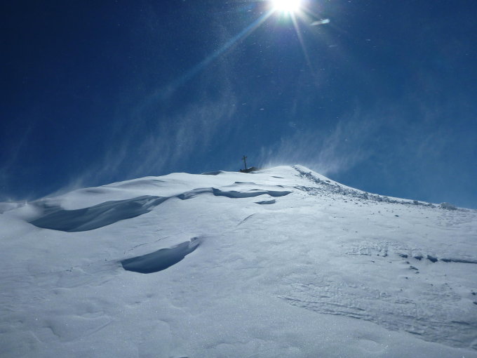 Nur eitel Sonnenschein. Auf dem Gipfel etwas Wind.