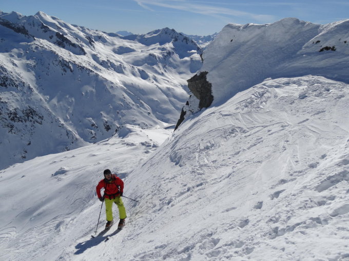 Verschiedene, gute Spuren führen ab Hospental bis zum Gipfel. Abfahrt ruppig, Schnee ziemlich verfahren. Trotzdem schöne Tour. Das Einzige,was stört, sind die alten Skiliftmasten.