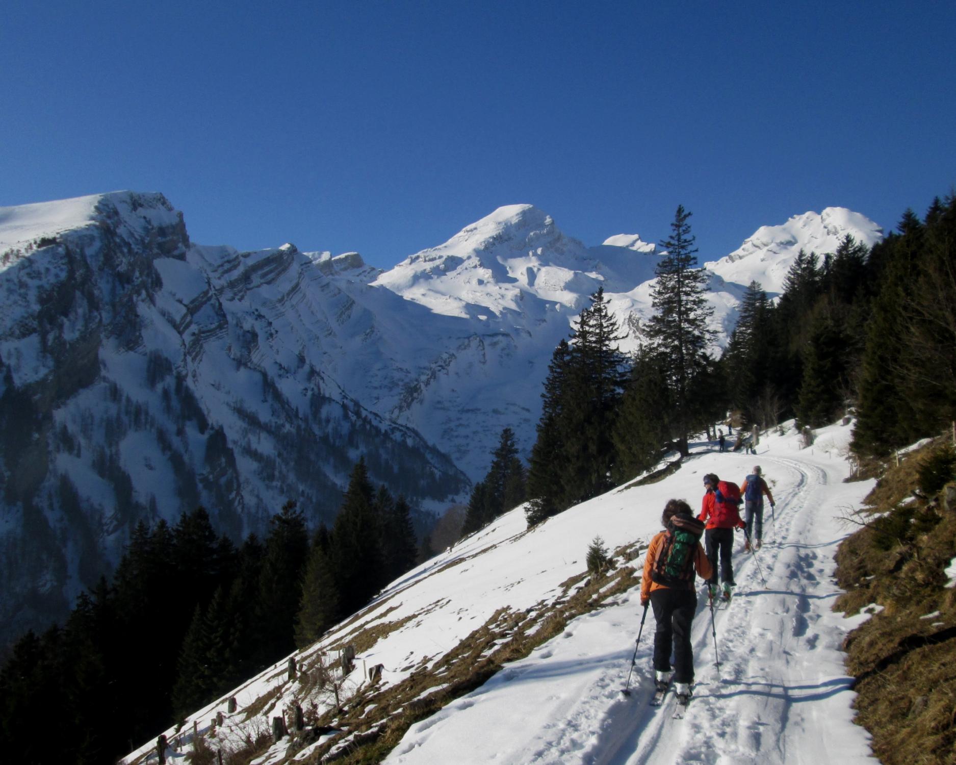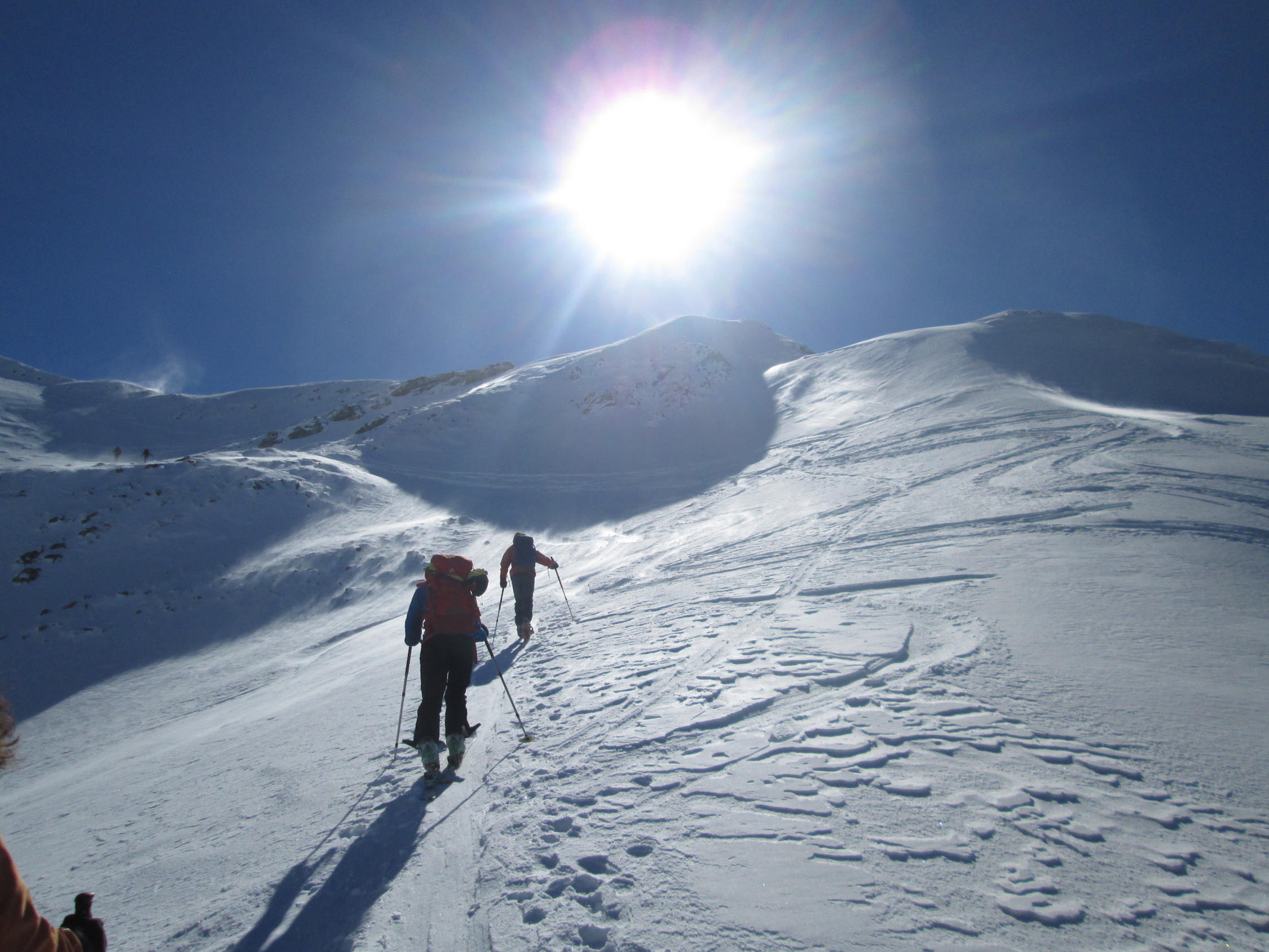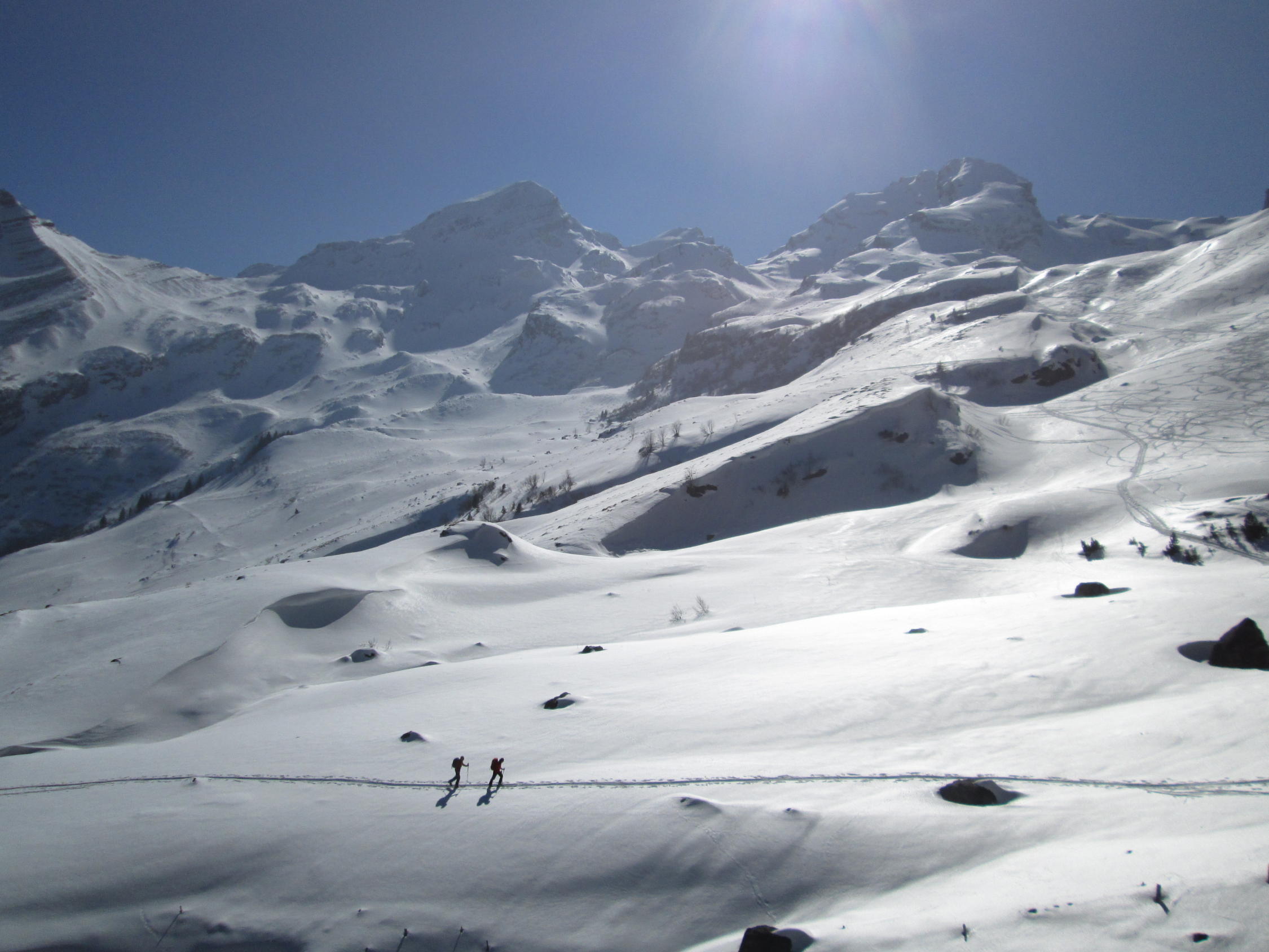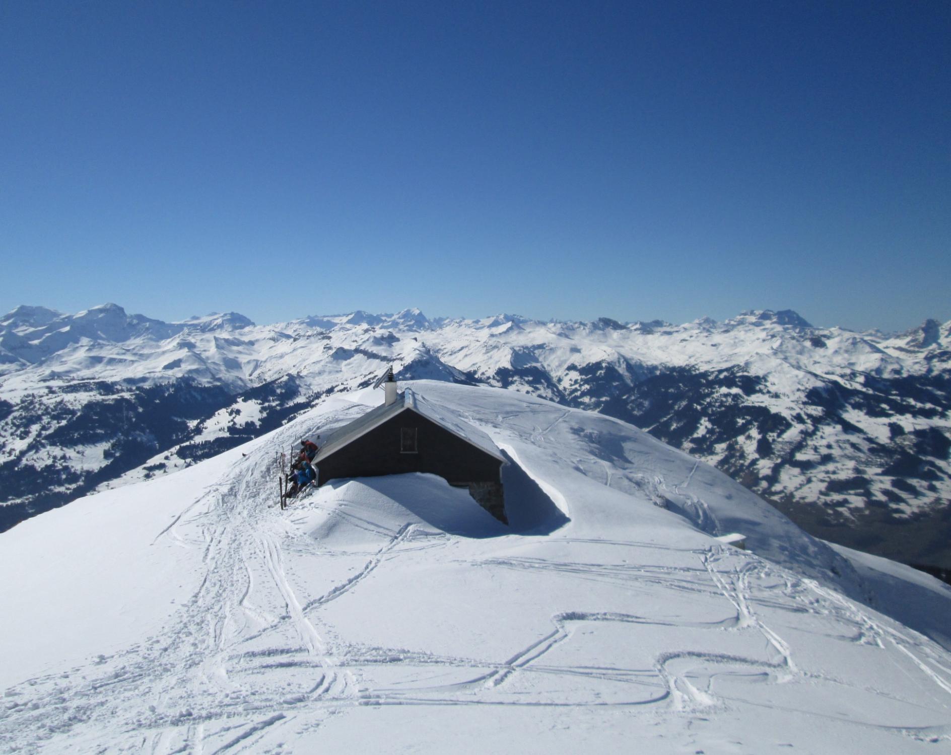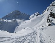 Alpweg nach Untersäss bis auf zwei kurze apere Stellen noch gut begehbar. Abfahrtsverhältnisse recht unterschiedlich: Im Gipfelbereich Pulver, Nordflanke überwiegend gedeckelt, aber noch ganz gut fahrbar, nach unten hin schon schöner Sulz. Hin und wieder Steinkontakt liess sich nicht ganz vermeiden. Im Gipfelbereich kalte Bise, sonst ziemlich warm.