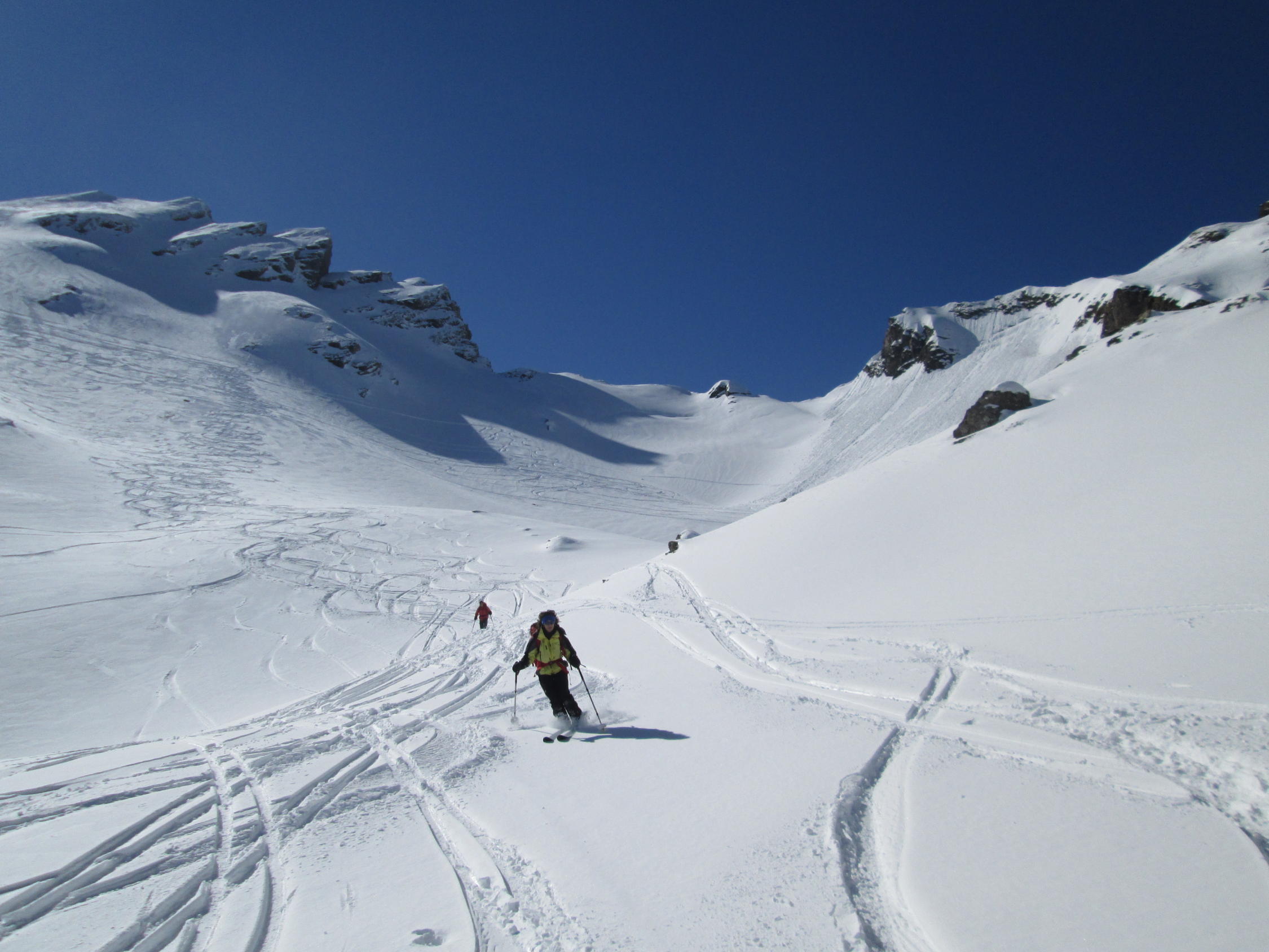 Im Osthang oberhalb Untersäss löste sich nachmittags ein Schneebrett über einem Felsabbruch, welches aber kurz unterhalb der Felswand liegen blieb. Einige oberflächliche Rutsche in sehr steilem Gelände.