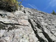Die Kletterroute ist 160m lang, und hat 7 Seillängen 4c bis 5c. Sie ist ausgezeichnet abgesichert. Durch ihre nach Südosten geneigte Expo hat Sie schon früh am morgen Sonne. Der Abstieg führt nördlich durch einen steilen Waldweg hinunter.
