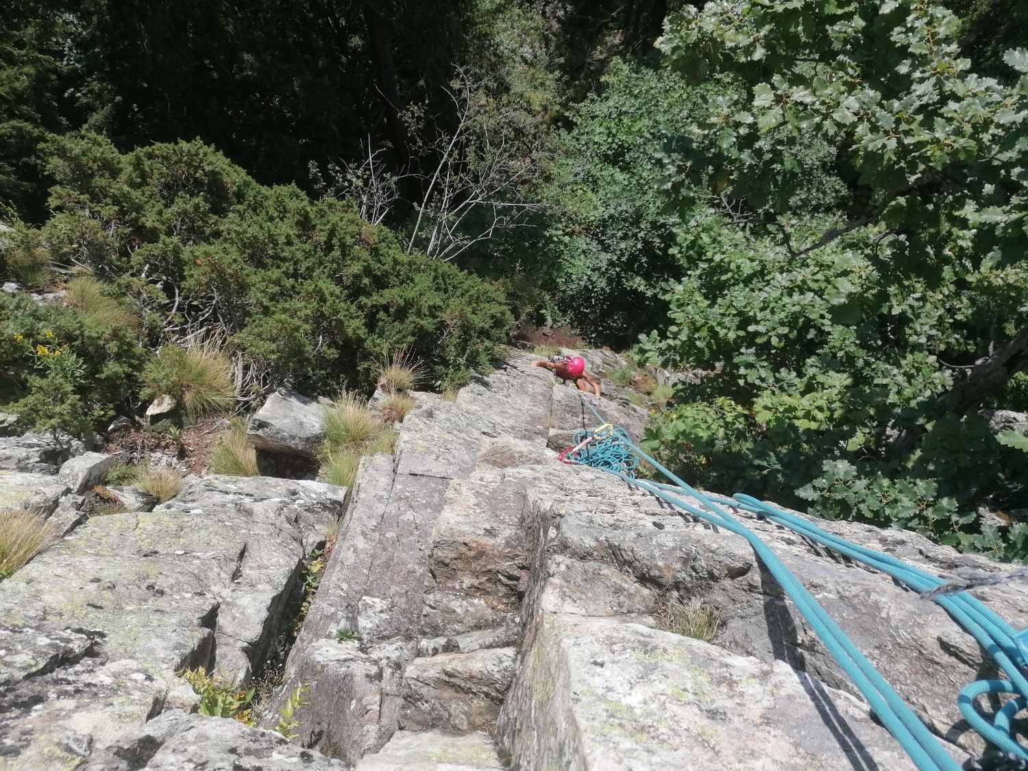 Ausgezeichnet. D.h. bis auf die Einstiegs-Seillänge waren die Felsen trocken. Ich habe einen älteren Film eingebaut, wo man einen besseren Blick ins Rhonetal hat.