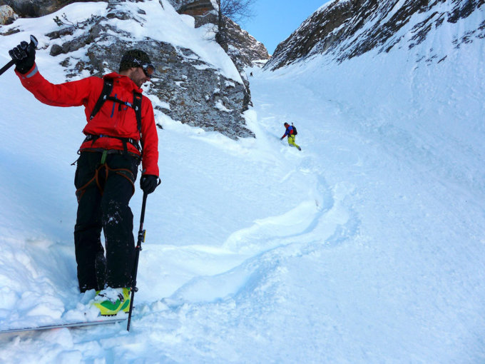 Kompakter Pulverschnee im Couloir und in den Osthängen.