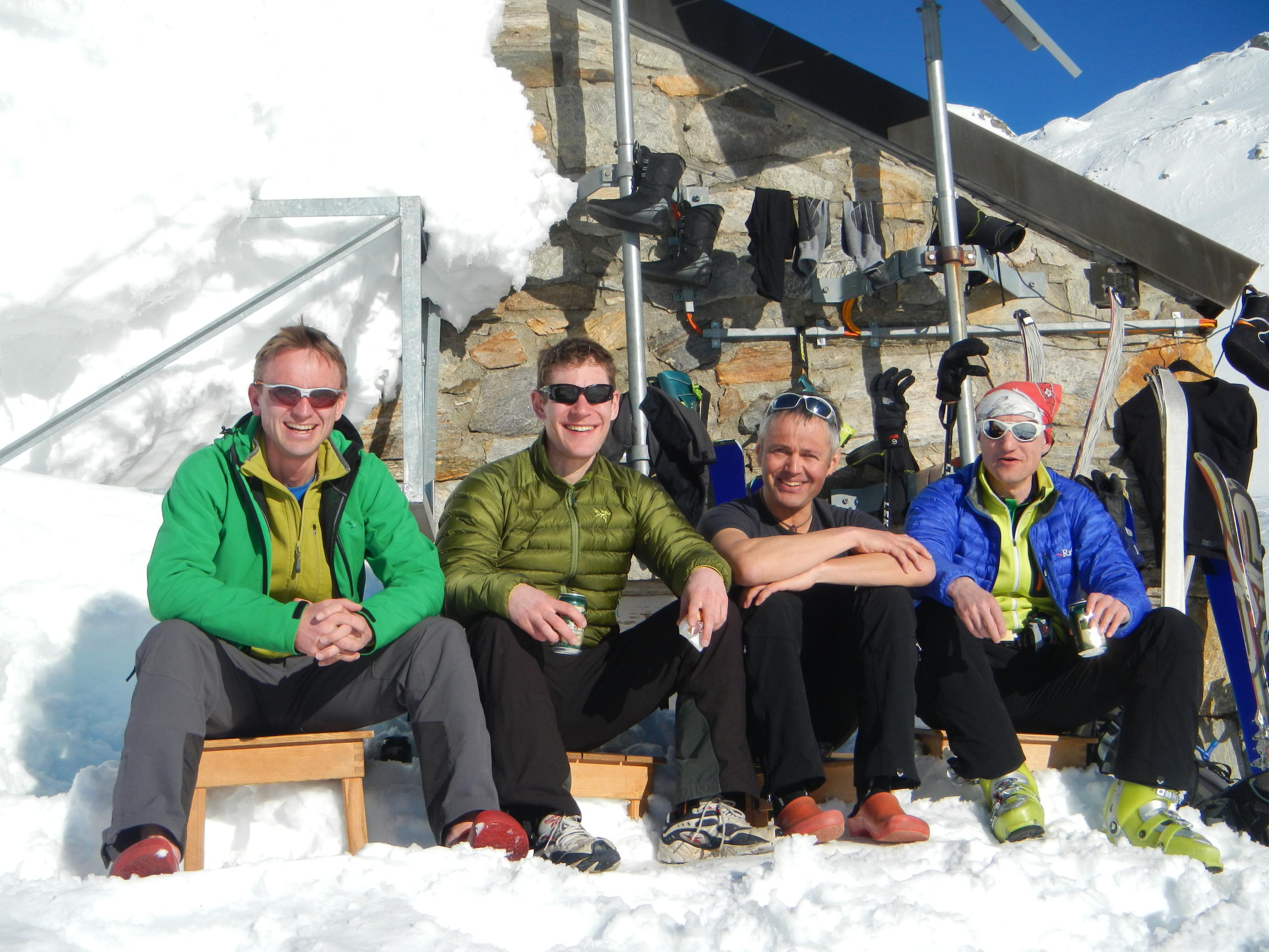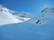 Hüttenzustieg bis Binntalhütte morgens noch gefroren, rasch weich werdend. Nordseitig noch guter Pulver, unterhalb Mittelbergpass bereits Bruchharst.