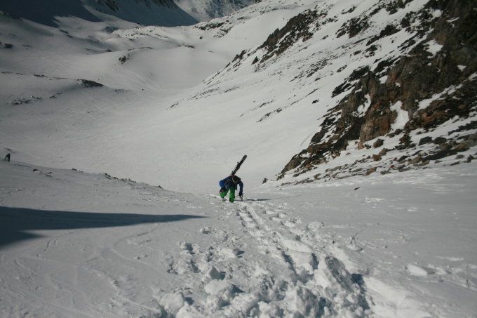 Über S-Grat gut machbar, kein Problem. Auf der Nordseite am Ober Schatzfirn massiv eingeweht. Wir wollten den P. Centrale über die Tour 176d gehen, haben aber wegen dem vorhanden Triebschnee den Aufstieg über die N-Seite und das Couloir nicht durchgeführt. Stattdessen zurück und sind über Tour 176a problemlos auf den Gipfel gelangt.