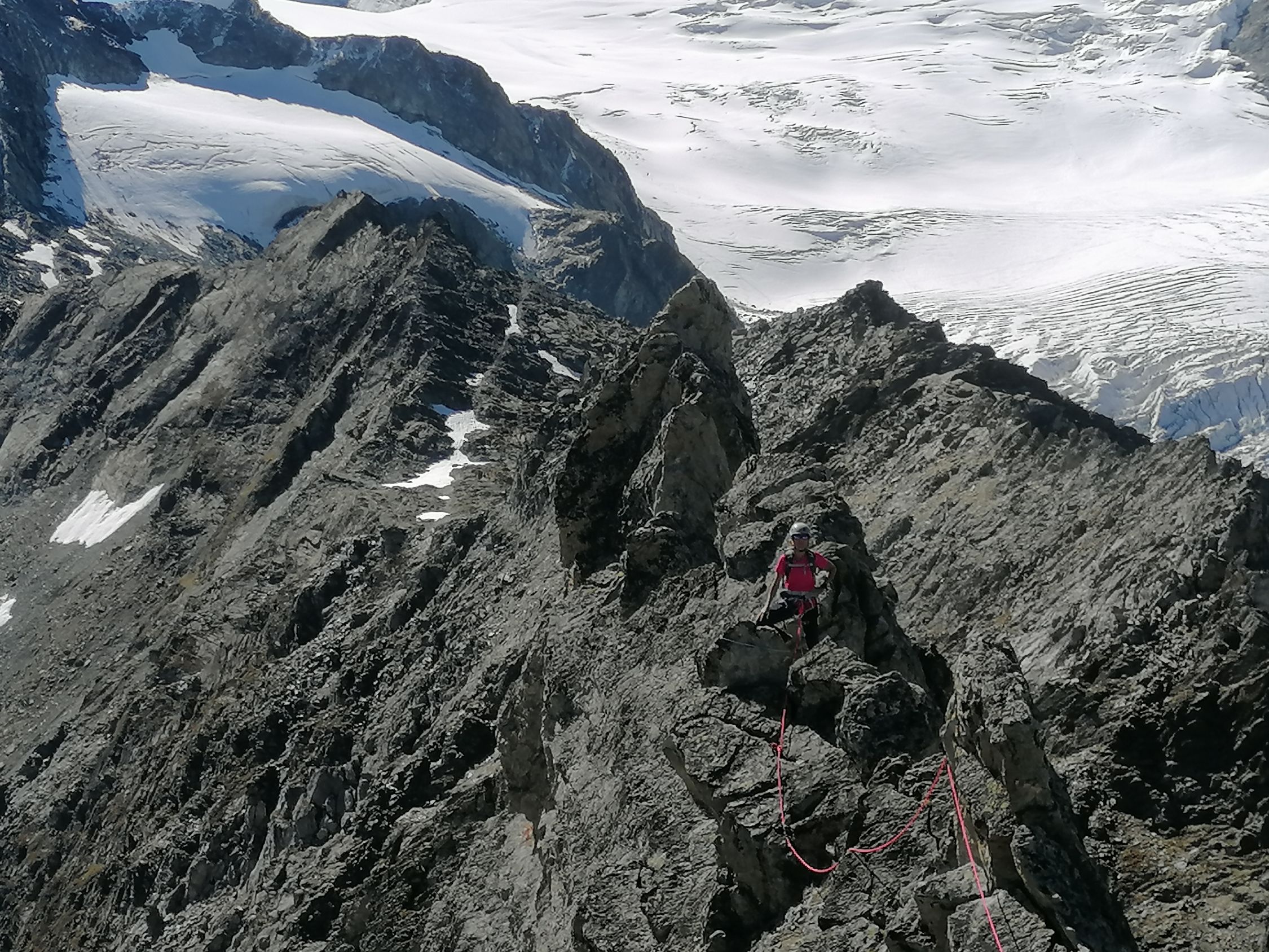 Grossartige Gratüberschreitung in Süd-Nordrichtung über die Aiguilles de la Lé. Man befindet sich hoch über dem traumhaften Seitentäler im Kanton Wallis vom Val Moriy und Val d`Anniviers.