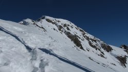 Vom Wind geprägter Schnee, fest und deckelig. Gute Spur vorhanden und somit keine Probleme im Aufstieg.