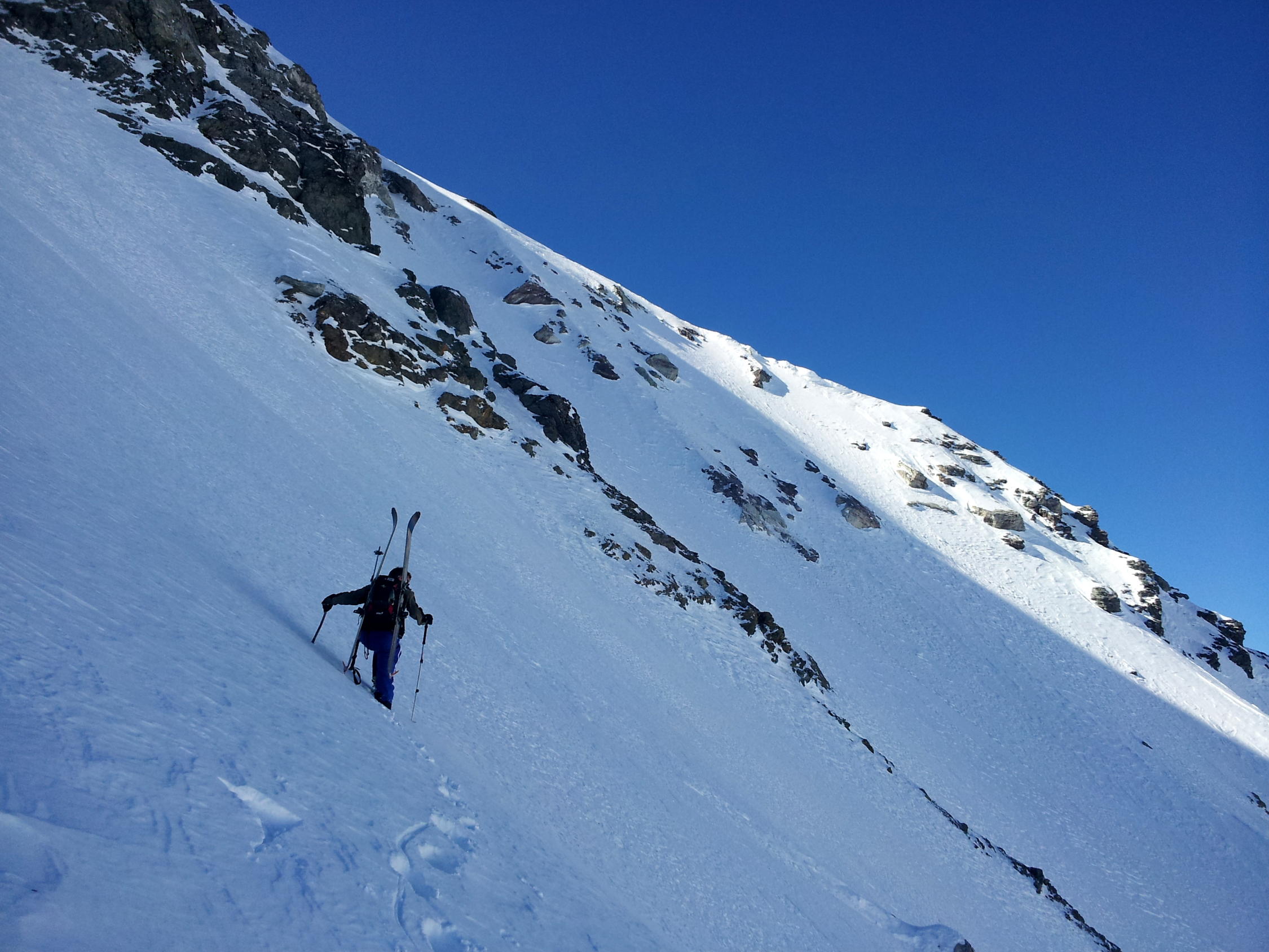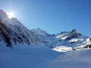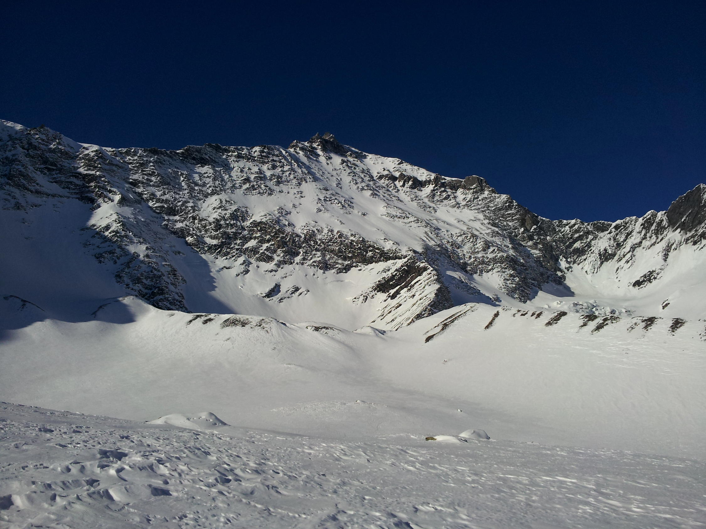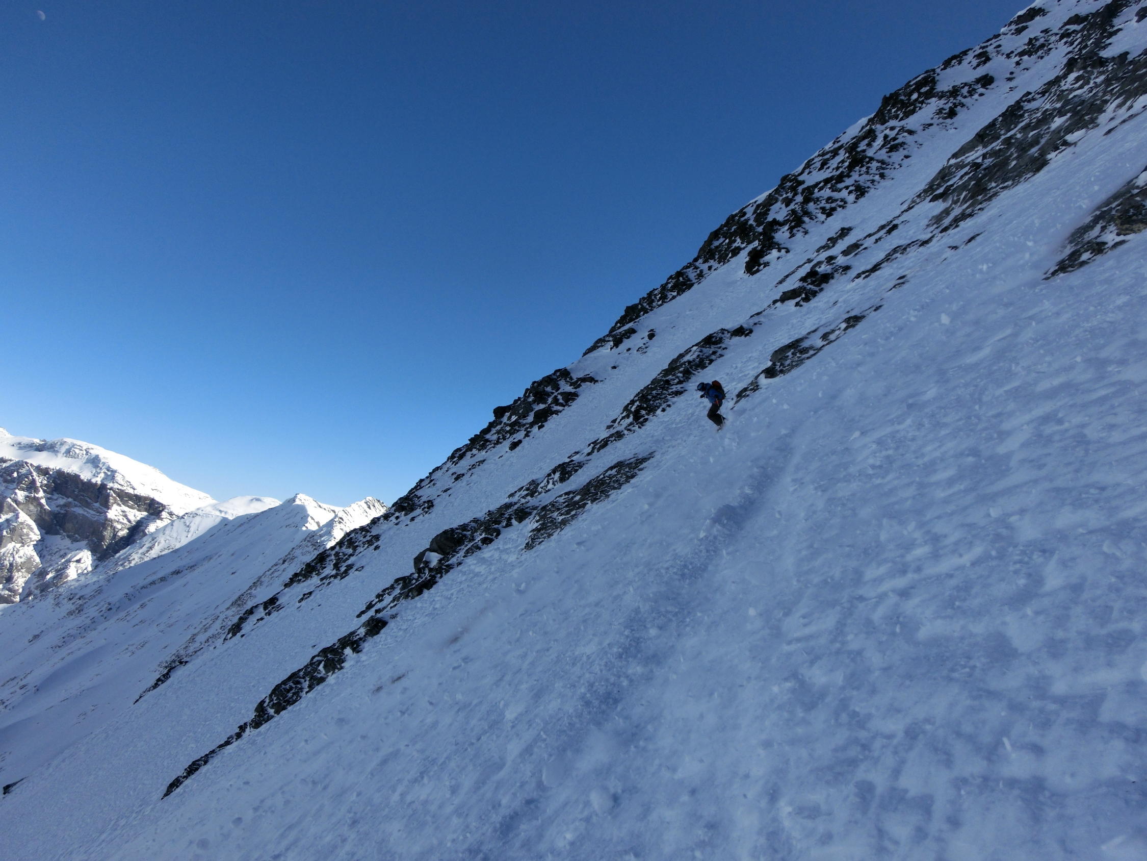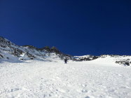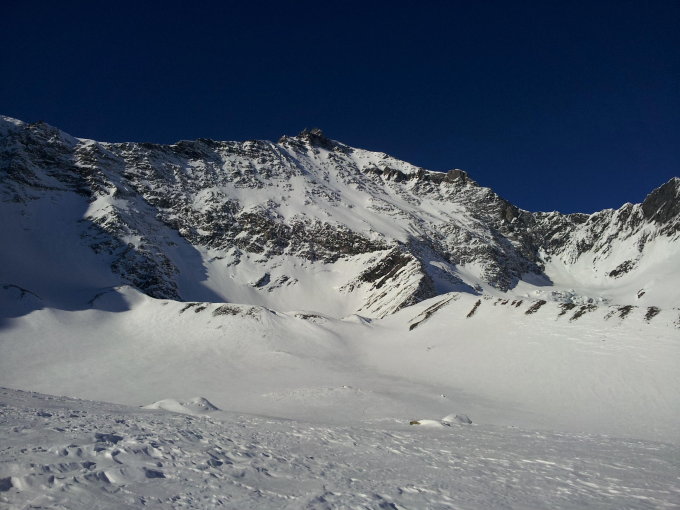 Schnee in der Nordostwand bleibt hart, aber homogen und somit berechenbar zu fahren.