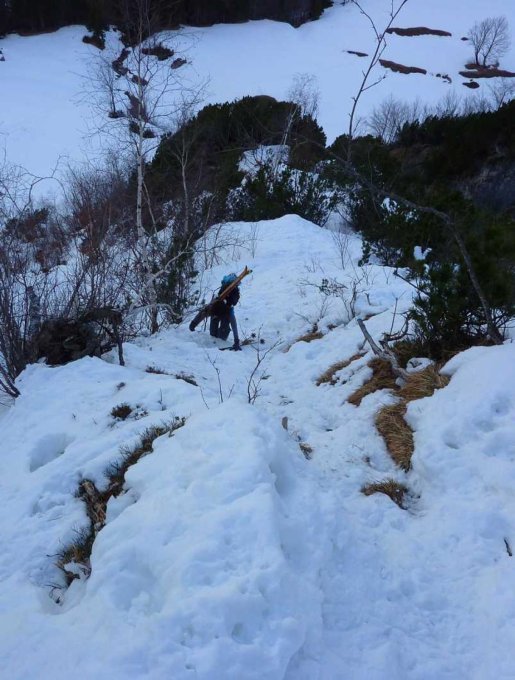 In der Querung ins Kaltwinkelkar vormittags ein paar kleinere Rutsche von oben.