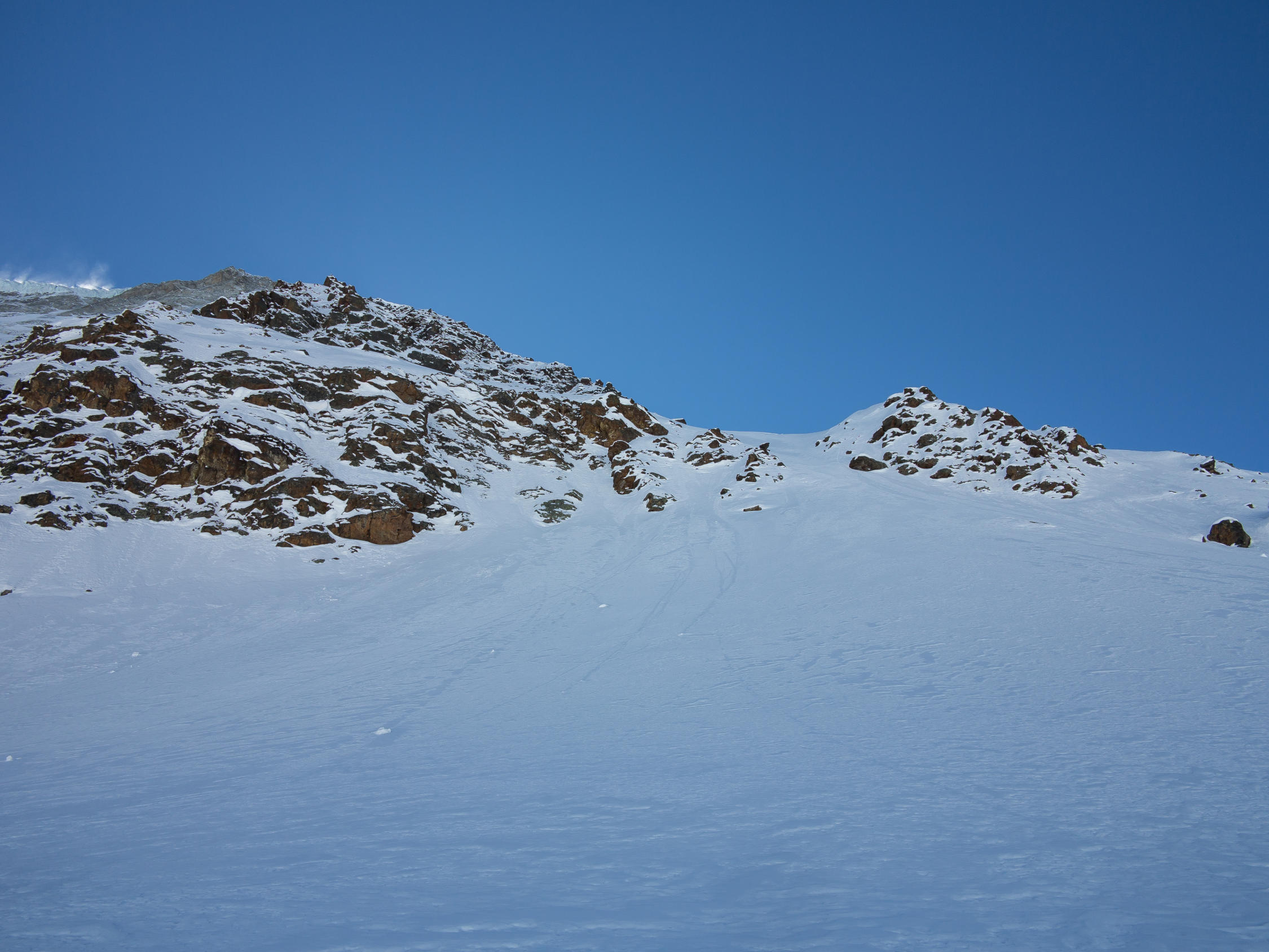 Da der Anstieg über den Loibinbachgletscher in einer Wildschutzzone liegt, haben wir uns für diesen recht anstrengenden Aufstieg entschieden. Braucht dafür keine Hochtourenausrüstung und kein Seil, falls man sich mit dem Skidepot zufrieden geben kann.