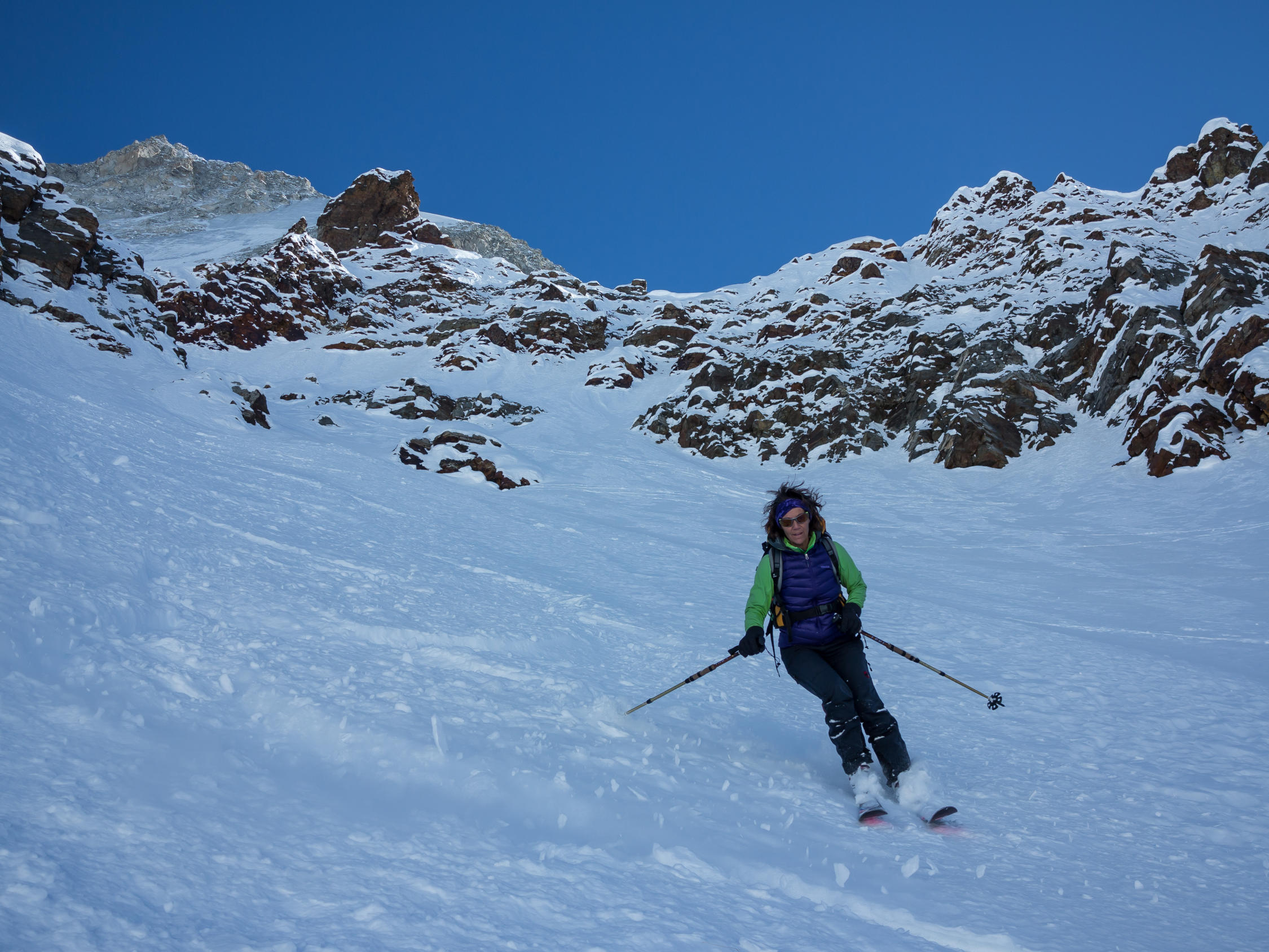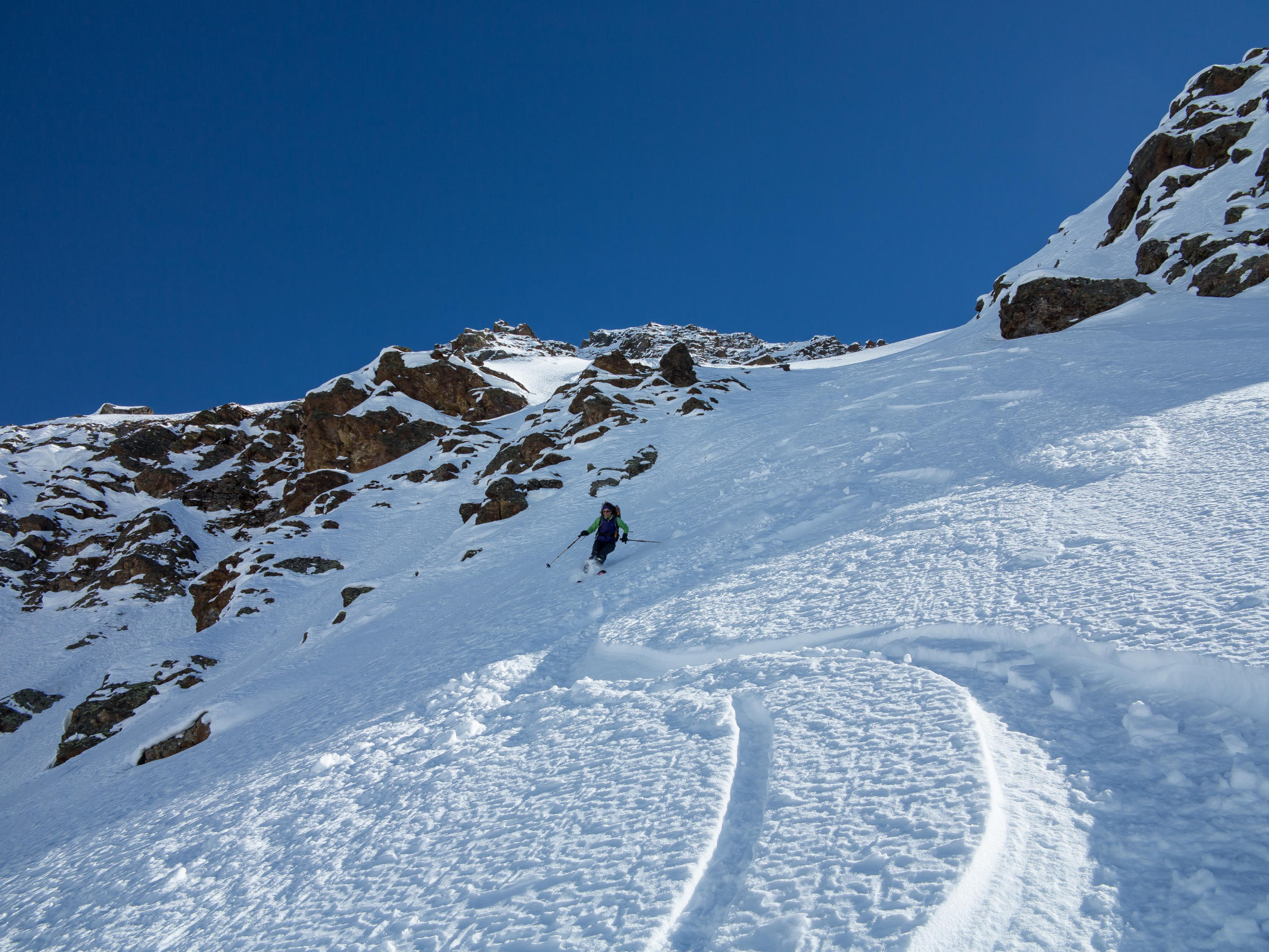 Gut gesetzter Pulverschnee, spannende Routenfindung, welche mit diesen Angaben sicher etwas erleichtert wird. Ein Traum zum Skifahren...