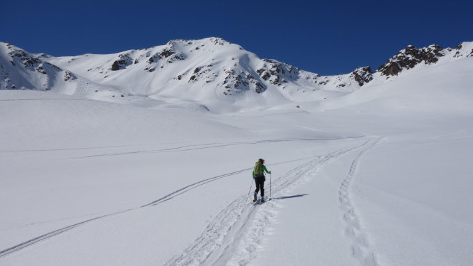 Generell liegt im Gebiet wenig Schnee für die Jahreszeit. Die Ostseite mit dem Sentisch Horn kann noch länger ohne Steinkontakt befahren werden. Auf der gegenüberliegenden Seite beim Aufstieg zum Gorihorn wird der Schnee im unteren Teil bereits knapp.