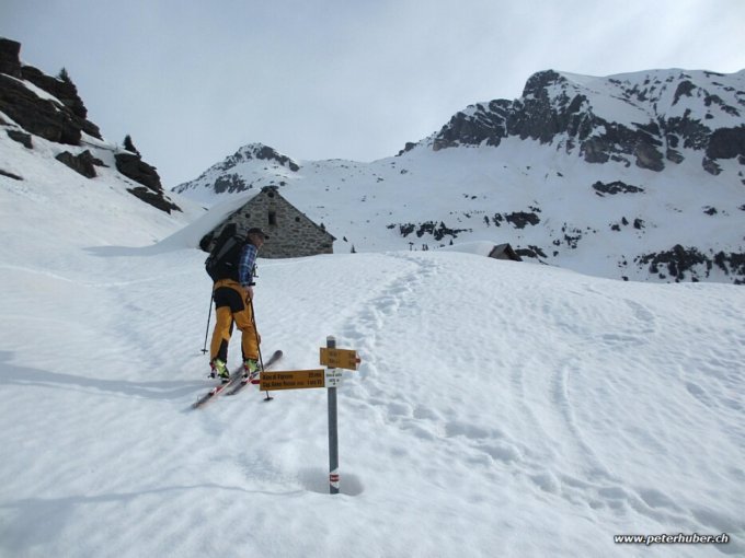 Bleiche Sonne, teilweise auch etwas mehr Wolken. Später starker Nordwind. Es hat genügend Schnee ab Molare. Am Morgen recht gut durchgefroren. Der Aufstieg über den Westhang zum Gipfel war mit Harscheisen gut machbar.