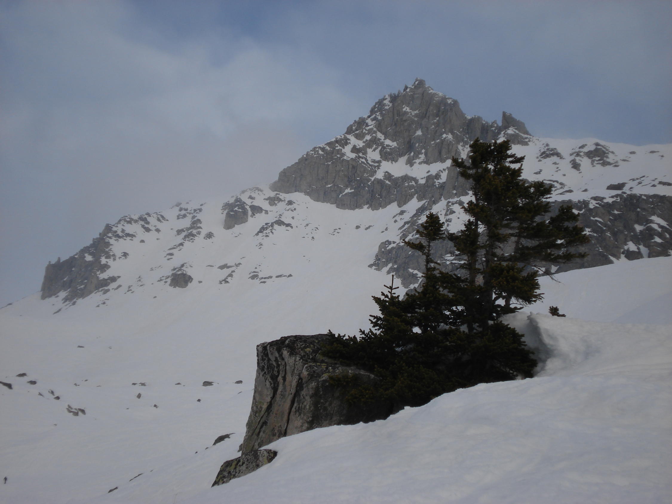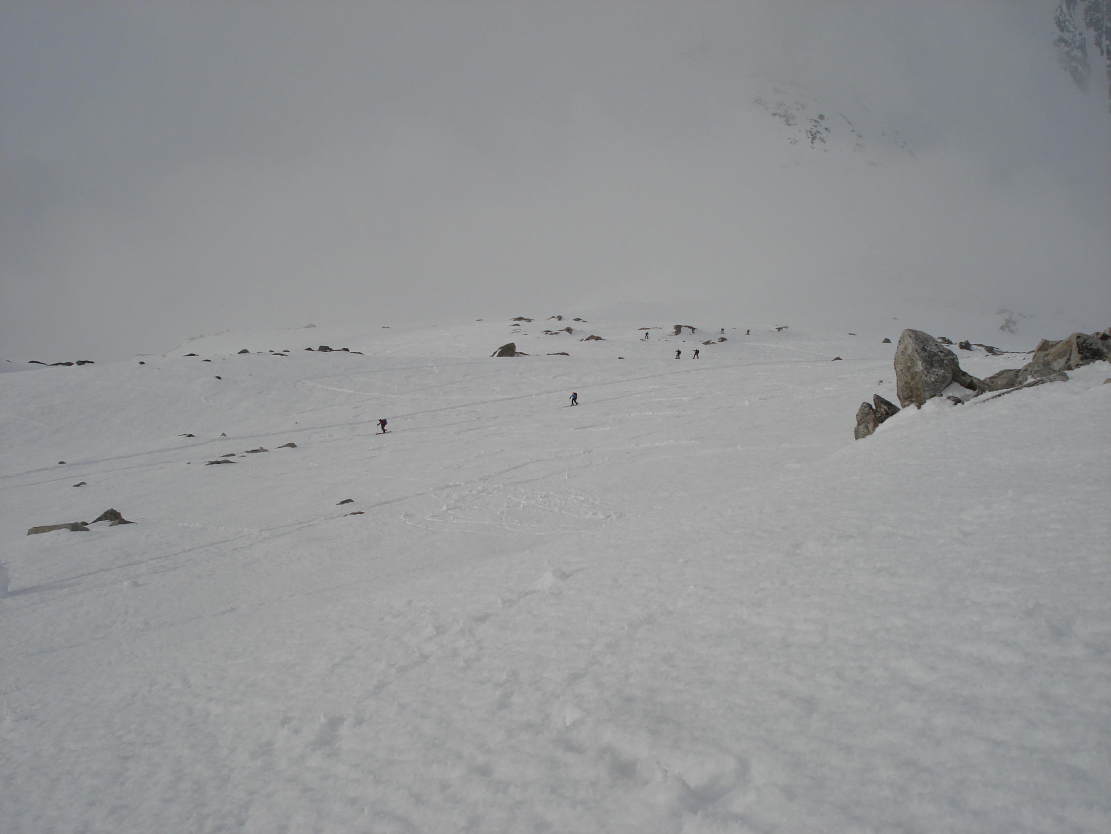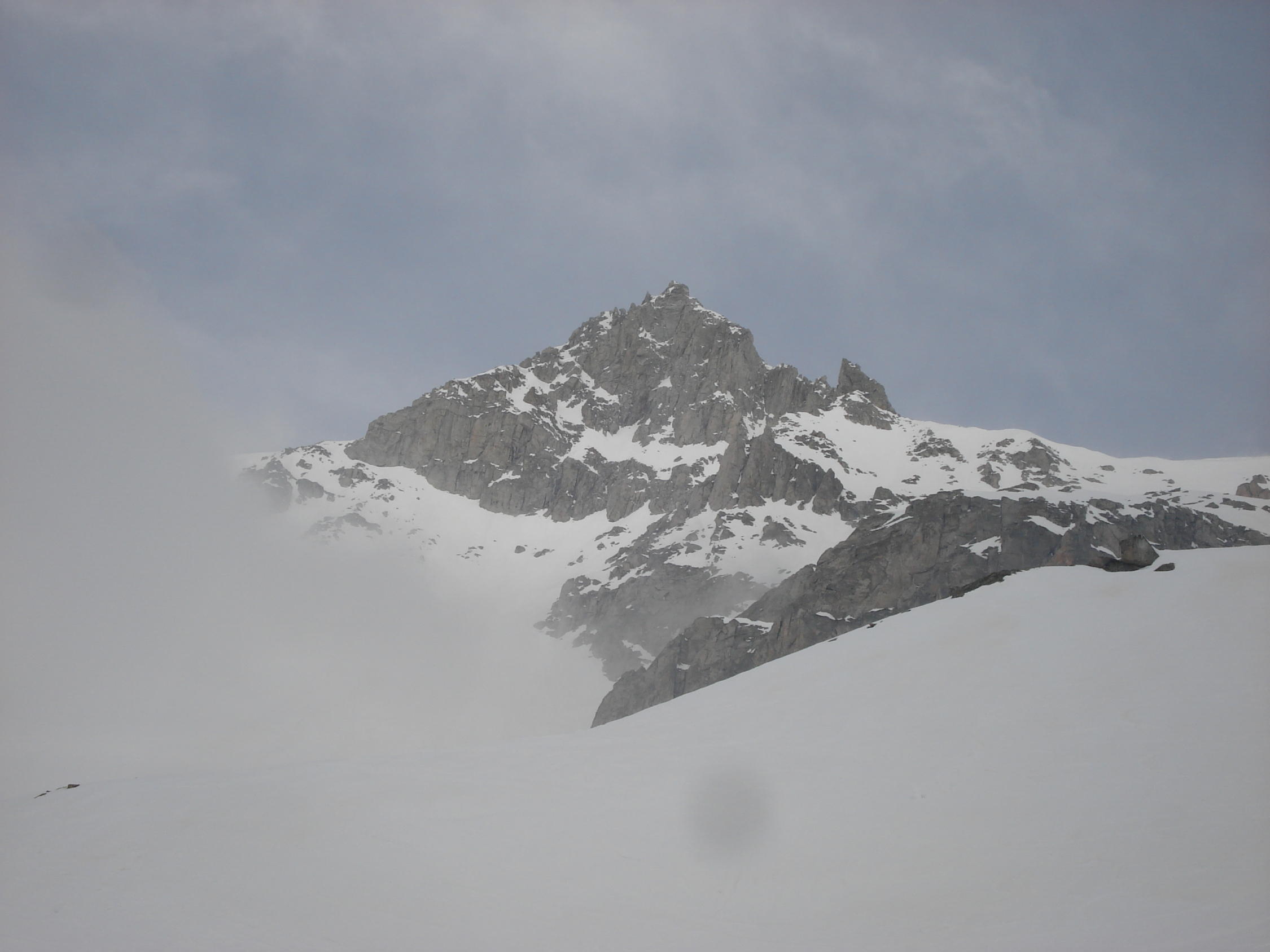 Gerenpass, ab Gerenpass dann leichte Nebelschwanden bis zum Gipfel. Aufstieg heute mit Ski bis wenige Meter unterhalb Gipfel möglich ,