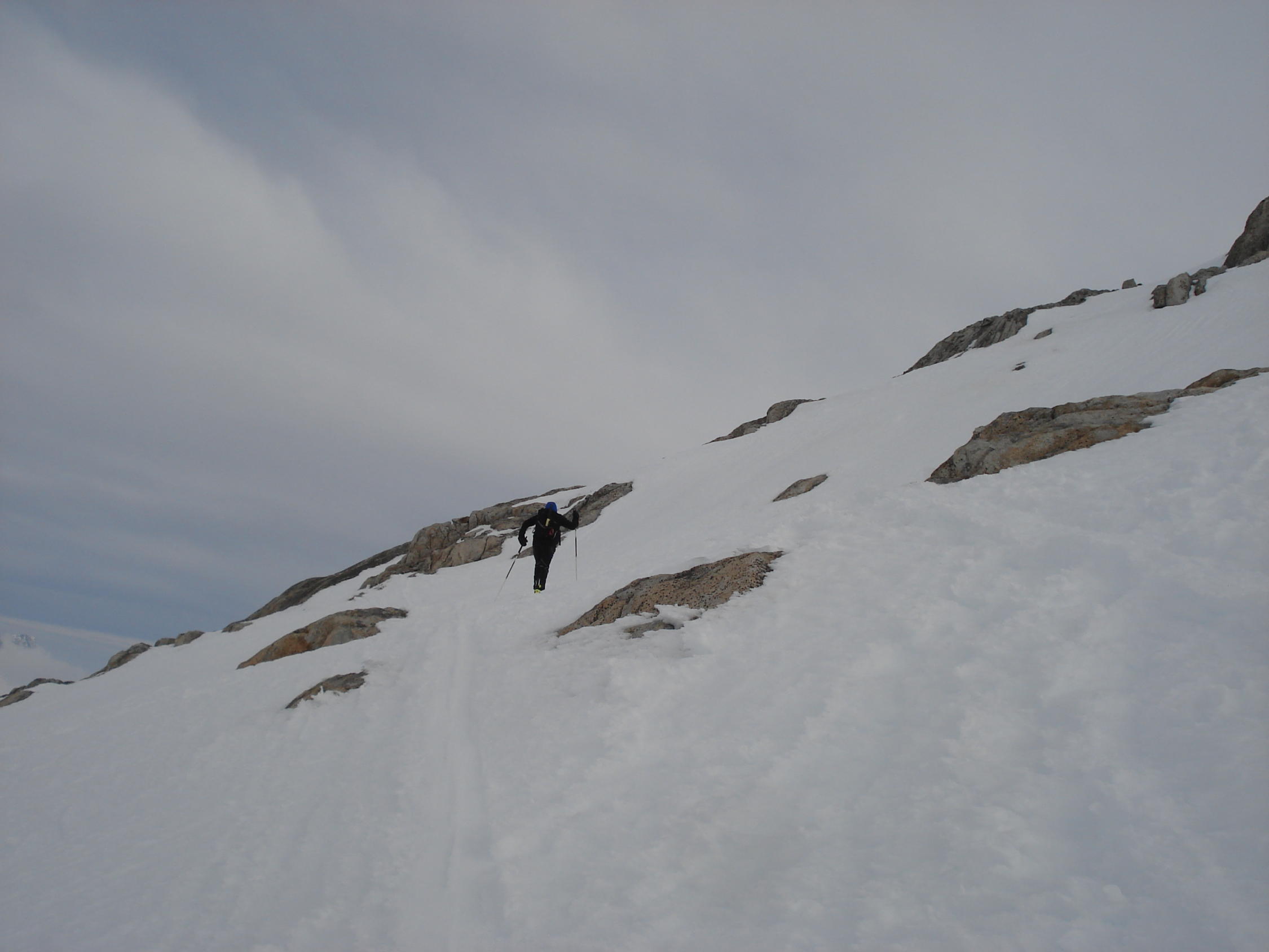 Wollten dann noch mit Ski NE Flanke Canale della Dama abfahren und den Pizzo Rotondo besuchen aber die Verhältnisse waren zu schlecht. Abfahrt war heute nich so der Hit, sehr ruppig noch Hartgefroren mit sehr vielen Spuren von den Vortagen, ab Hütte dann leicht besser zufahren, als wir wieder beim Auto waren wurde das Wetter wieder gut, waren heute 2-3 Std. zu früh gestartet.