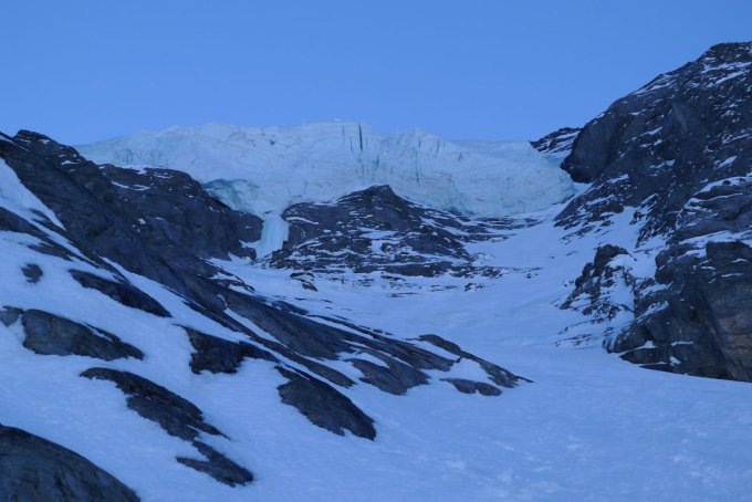 Vermutlich inzwischen nicht mehr ab 3740m fahrbar, da die obere dünne Schneedecke schnell schmilzt. Es möge nochmal ordendlich schneien, damit der Traum von der Abfahrt ab Gipfel wahr werden kann.