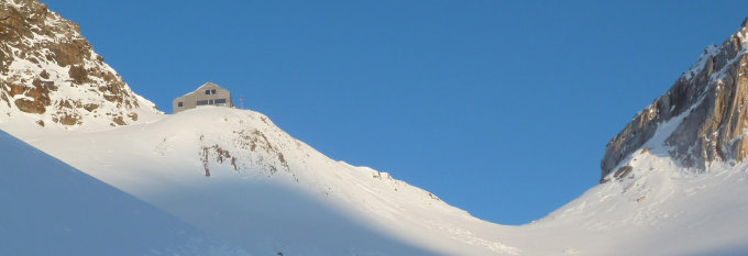 Medelserhütte SAC noch bis Ende April bewartet. Gluschtige Kuchen vom Buffet und Abendessen mit Weitblick!