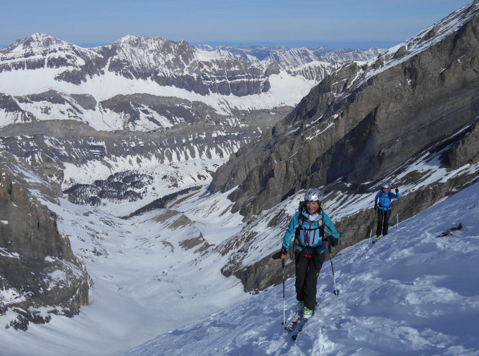Recht gute Verhältnisse, doch es liegt wenig Schnee im Gebiet. Auf dem Zackengrat ist der Schnee echt Mangelware, doch die alte Spur vermochte dem Wind zu trotzen, so dass wir die Skier einzig für den kurzen Abstieg bei P. 3326 abziehen mussten. In der Westflanke gibt es Blankeis. Wir fuhren rechts davon ab (von oben gesehen). Der Schnee ist noch nicht optimal umgewandelt.
