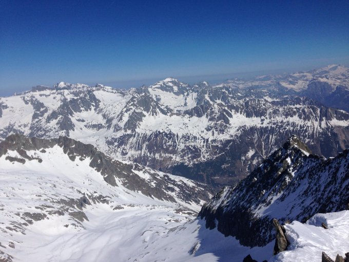 Mit Ausnahme von ein paar wenigen Tragepassagen hat es Schnee bis ins Tal. Von Skidepot zum Gipfel sehr gute Verhältnisse mit Trittschnee. Abfahrt am Gipfelhang bis ca. 2400 m teilweise windgepresst, unten teils hart, teils sulzig.