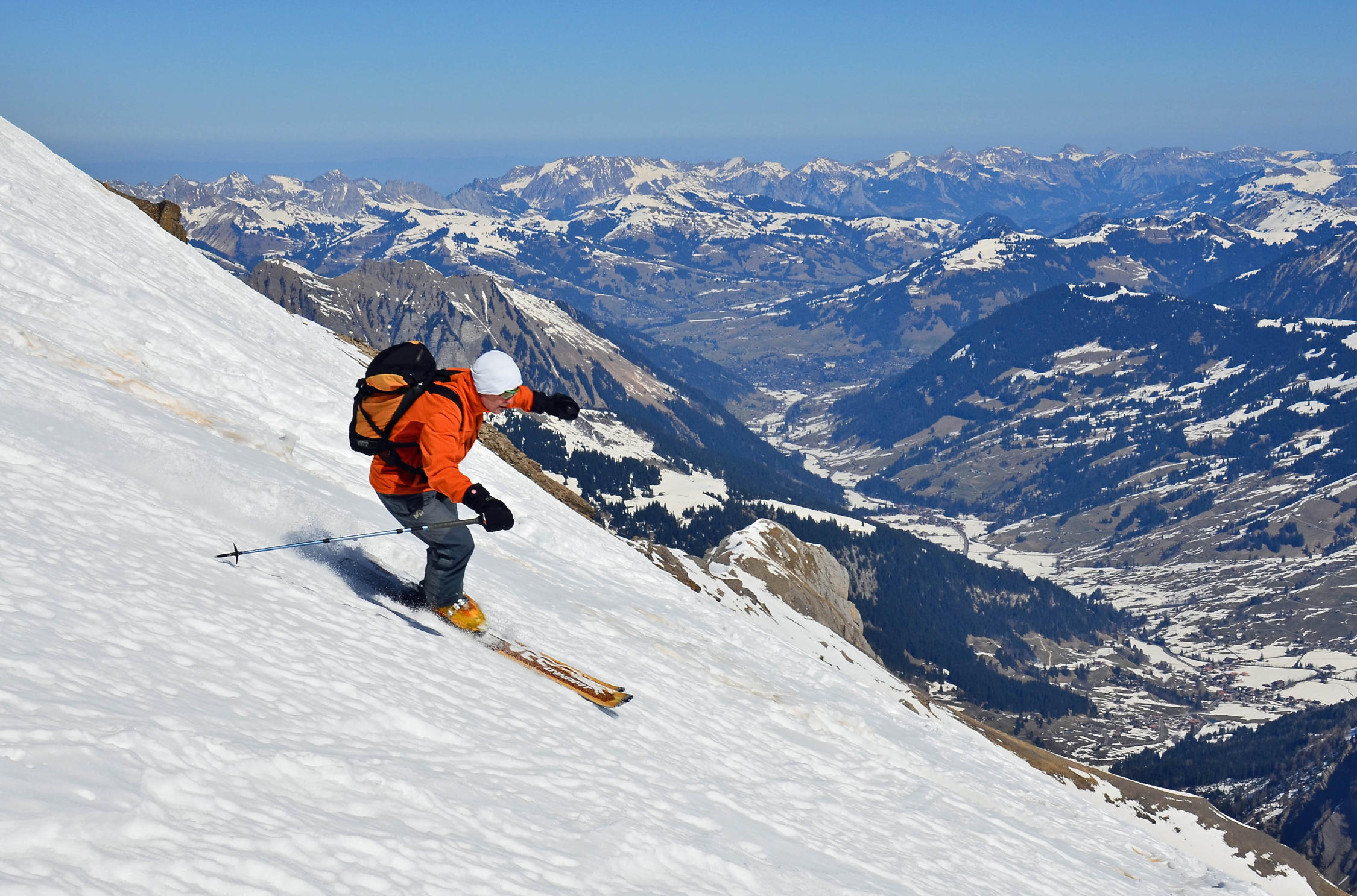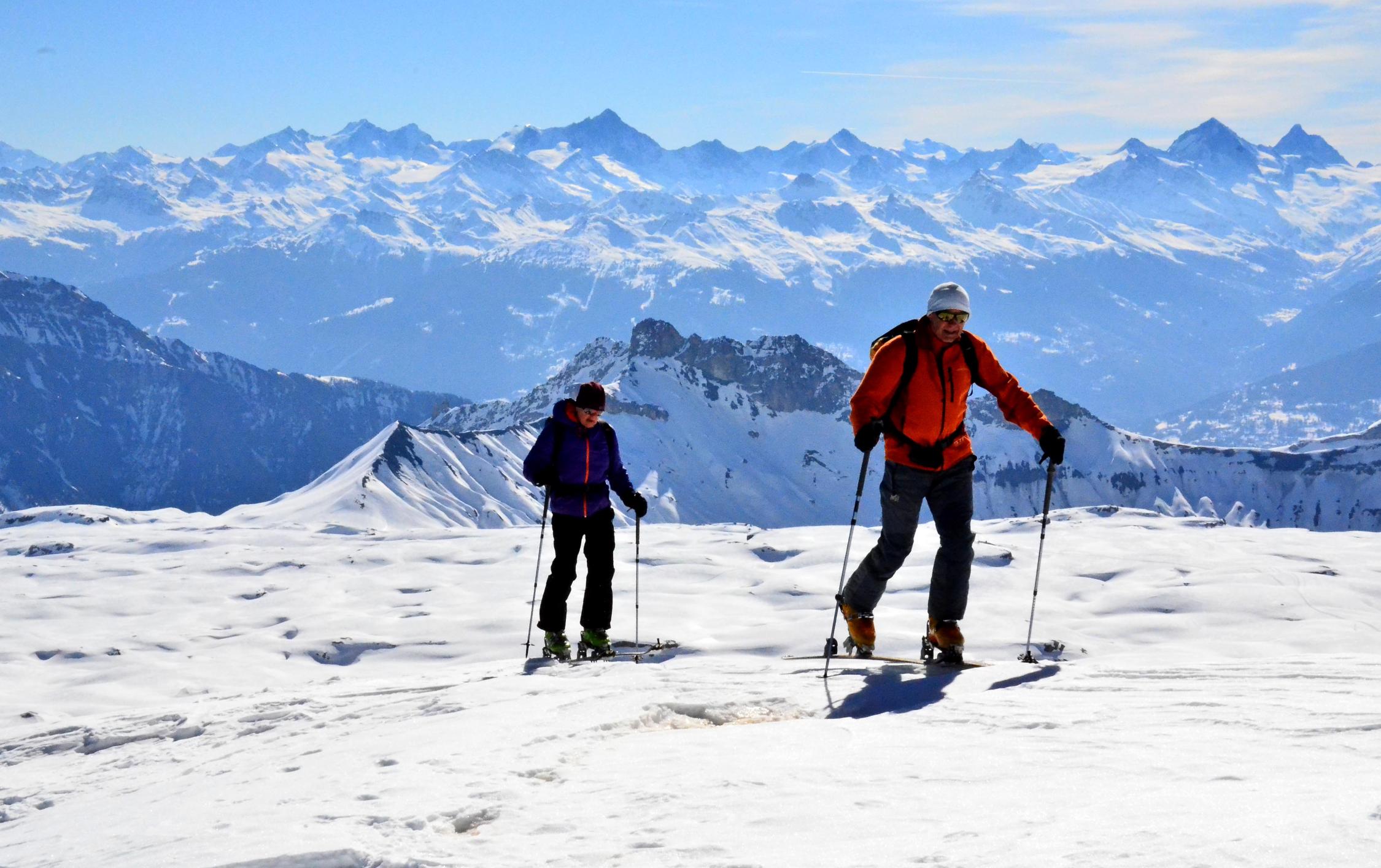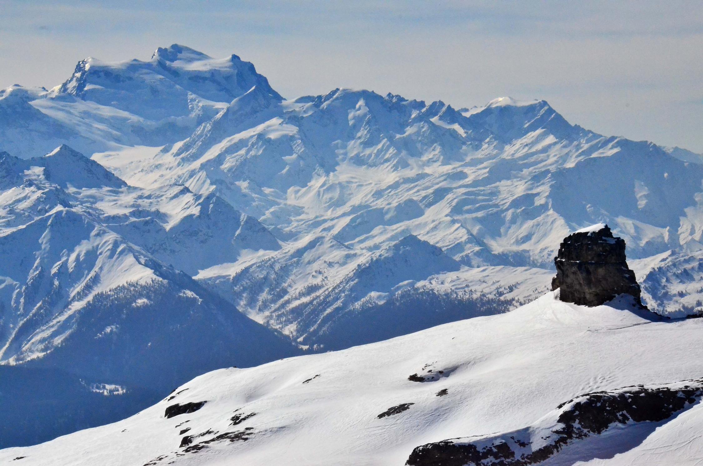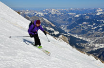 Ein sehr kurzer Aufstieg mit fast 2000 Meter Abfahrtsgenuss, wenn man die Piste nicht scheut. Landschaftlich aber sehr schön mit Panoramblick auf die grossen 4000er der Alpen.