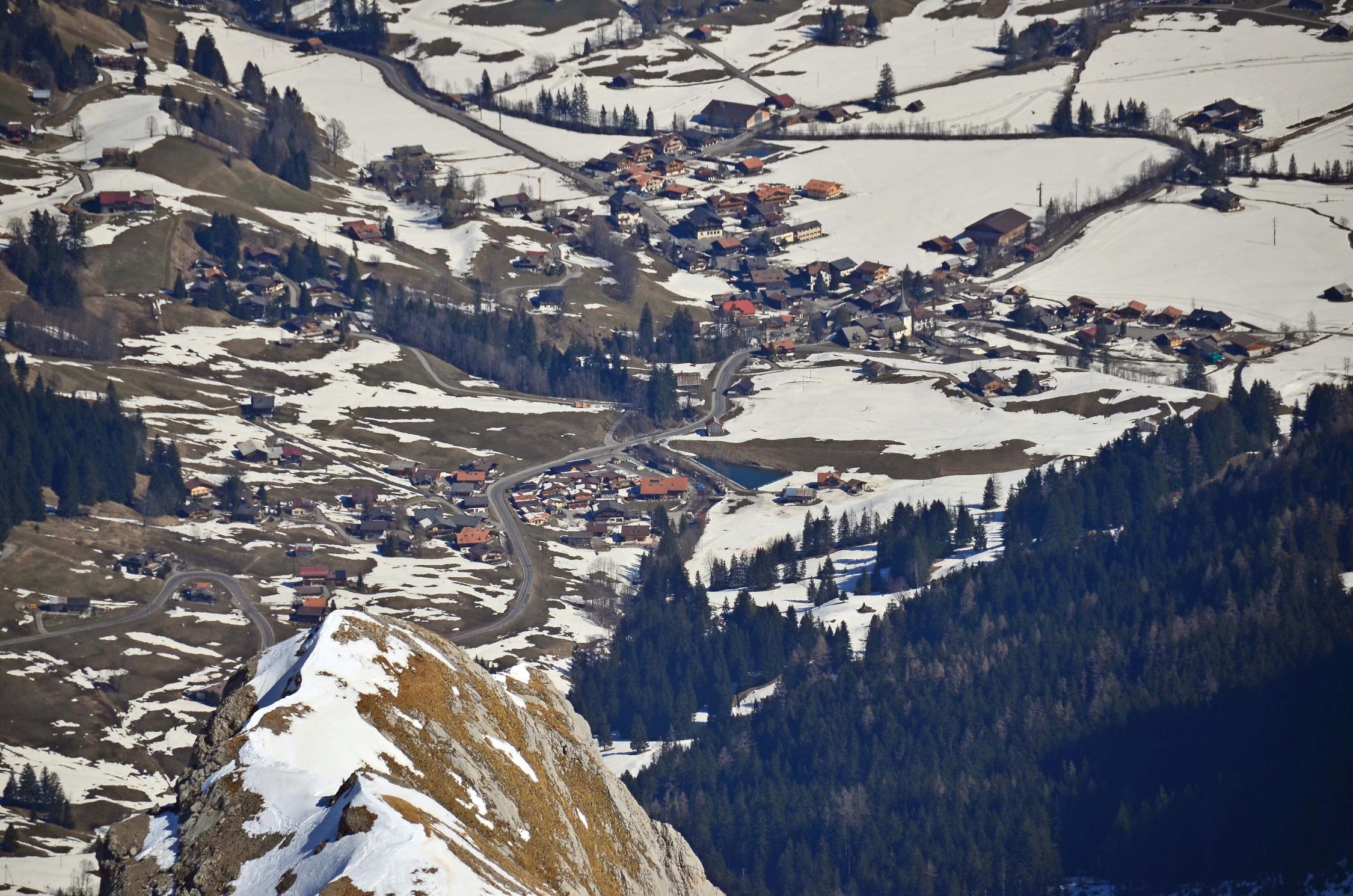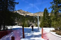 Abfahrt über die Piste und weiter über die geschlossene Piste bis Reusch. Es gab noch genug Schnee bis ganz unten.