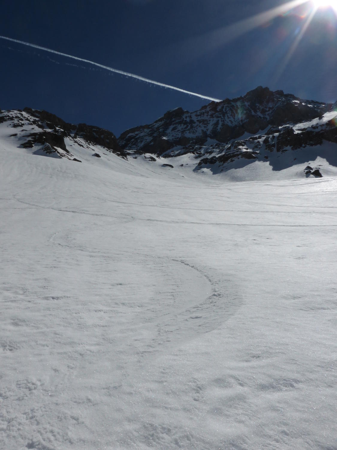 Es könnte nicht besser sein. Plaine Morte leicht gedeckelt - angenehm zu gehen. Aufstieg Westschulter: tw aper - Harsteisen ein Must. Überschreitung angenehm - nicht glasig oder hart. Schlussspurt: Tourenpiste. Abfahrt: bis Frühstückplatz Tourenpiste. Dann hart bis Ammerten Schafberg. Engnis bei der Hütte: mit Ablagerungen gespickt - aber gut umfahrbar. Unten raus Sonnseite Plütter - und Schattseite gefrohren. Und das noch um 13.00 Uhr. Abfahrt Start: 12.00 Uhr. War sicher nicht zu spät - eine Stunde später würde auch noch gehen.