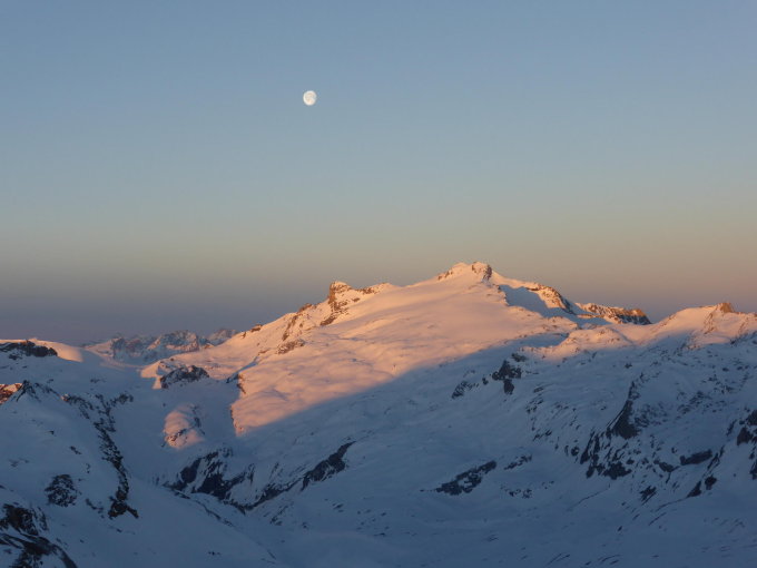 Es könnte nicht besser sein. Plaine Morte leicht gedeckelt - angenehm zu gehen. Aufstieg Westschulter: tw aper - Harsteisen ein Must. Überschreitung angenehm - nicht glasig oder hart. Schlussspurt: Tourenpiste. Abfahrt: bis Frühstückplatz Tourenpiste. Dann hart bis Ammerten Schafberg. Engnis bei der Hütte: mit Ablagerungen gespickt - aber gut umfahrbar. Unten raus Sonnseite Plütter - und Schattseite gefrohren. Und das noch um 13.00 Uhr. Abfahrt Start: 12.00 Uhr. War sicher nicht zu spät - eine Stunde später würde auch noch gehen.
