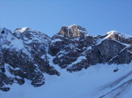 Nach dem Wettersturz neu beurteilen. Der Aufstieg durch das NW- Couloir ist 35 - 40 Grad steil. Er ist optimal für die Schneebrett-Bildung geeignet. Je nach Niederschlagsmengen empfiehlt es sich, einige Tage abzuwarten.