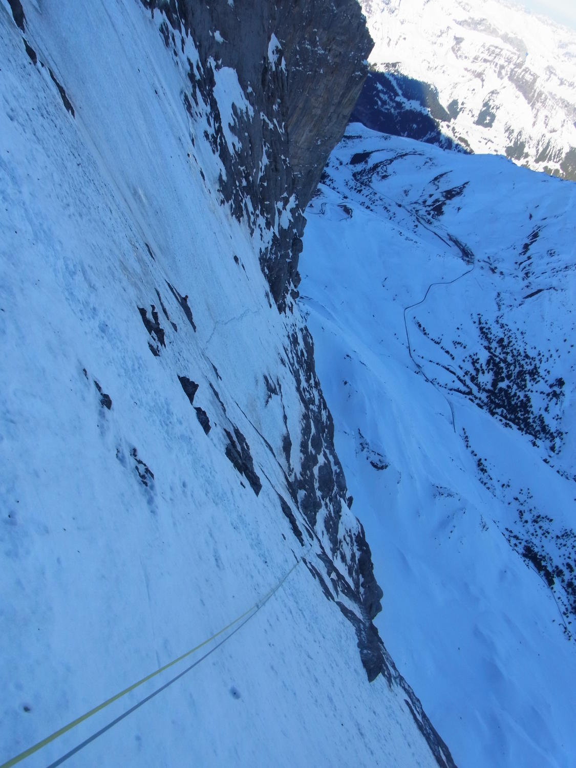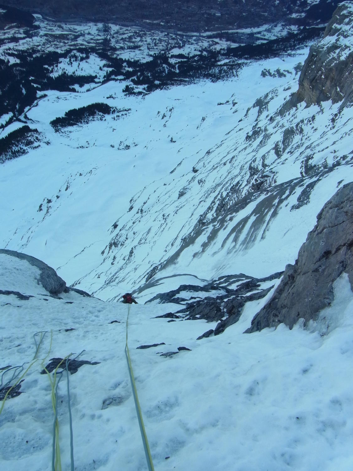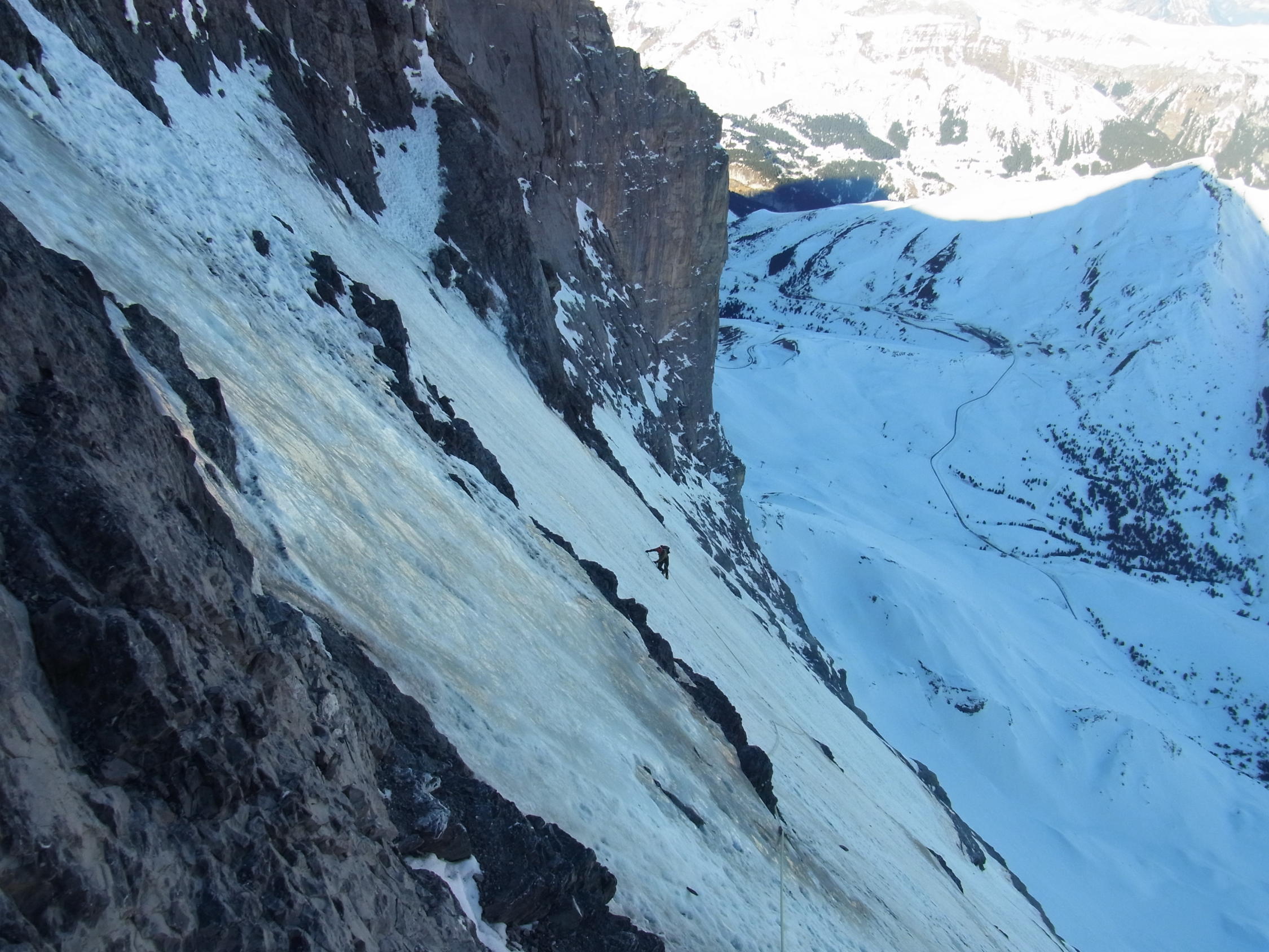 Beim zurückblicken in Grindelwald Grund: tolles Gefühl, zwei der großen Wände (Scheideggwetterhorn Direkte N-Wand) in Grindelwald gemacht zu haben.