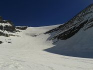 Abfahrt über den Schwarzgletscher, Blankeis von oben gesehen links abgefahren. Nach Kandersteg schmilzt der Schnee über den westlichen hänge davon (Bild).