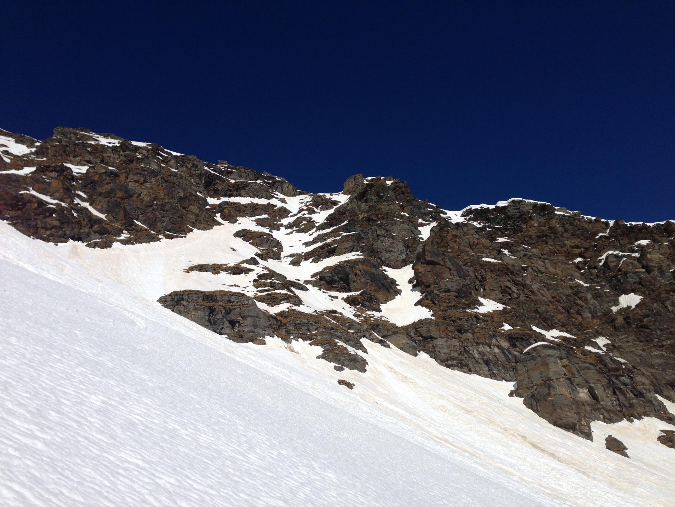 Eine Abfahrt direkt vom Skidepot in südöstlicher Richtung erscheint sehr verlockend ist aber aufgrund der Felsriegel nicht zu empfehlen. Hier wäre eine Überschreitung des Gipfels nach Süden und Einfahren in den Osthang vom Sattel zwischen Piz da la Margna und F. da la Margna sinnvoller gewesen. Die Abfahrt über die Osthänge unterhalb des Fil da Murtairac ist landschaftlich sehr schön, aber aufgrund der langen Schönwetterperiode reiner Bruchharsch und skifahrerisch nicht zu empfehlen (Bei Neuschnee sicherlich sehr Lawinen anfällig!!). Die Gegenanstiege nach Sils Maria nicht vergessen.