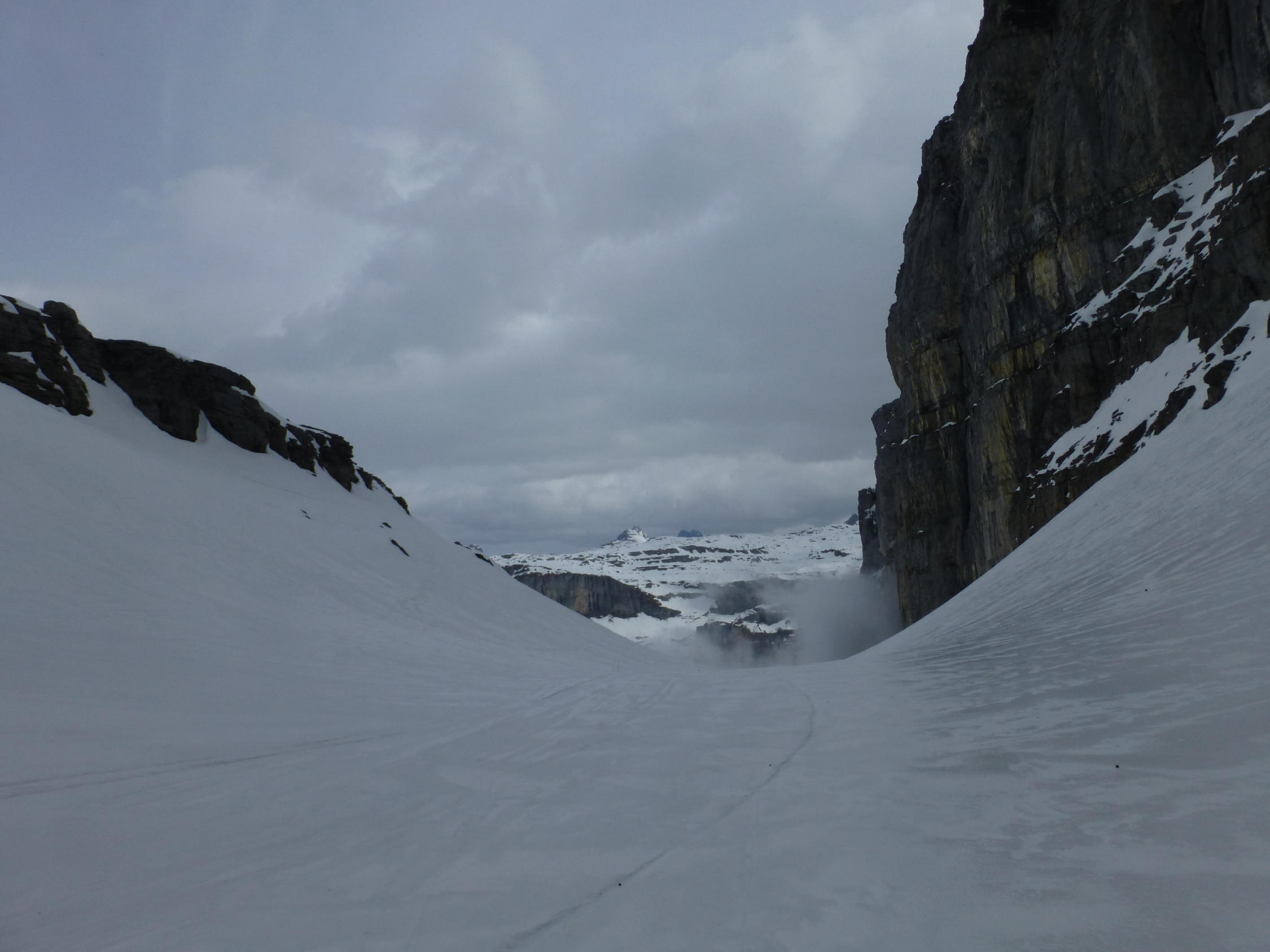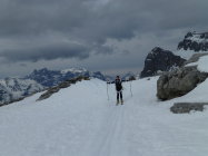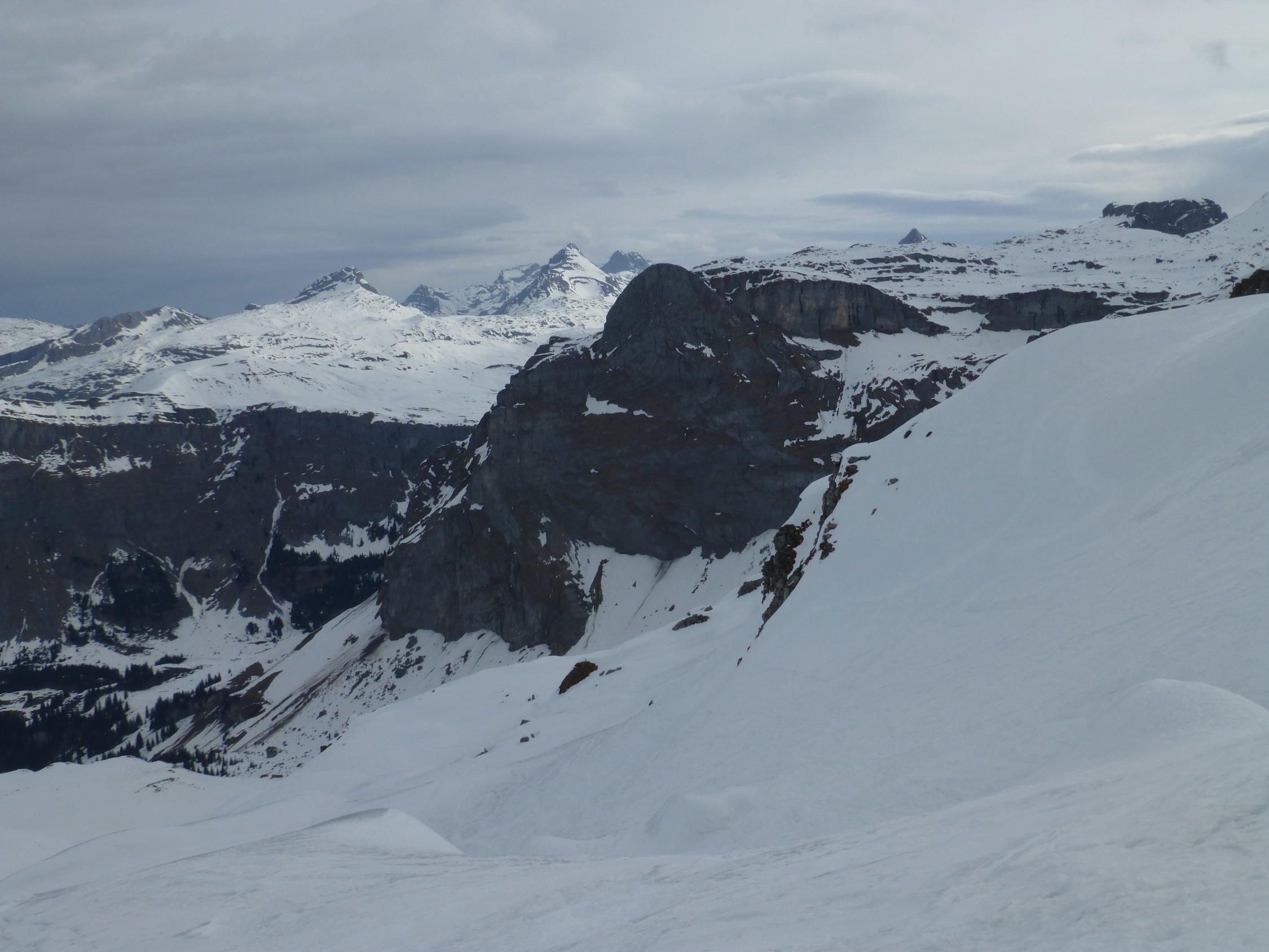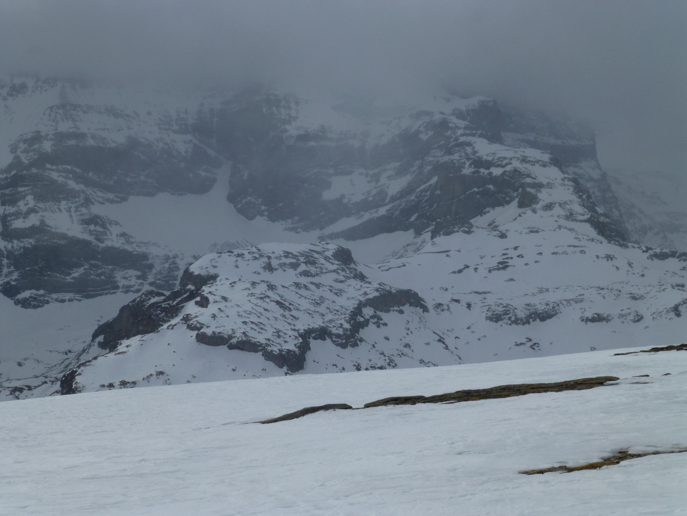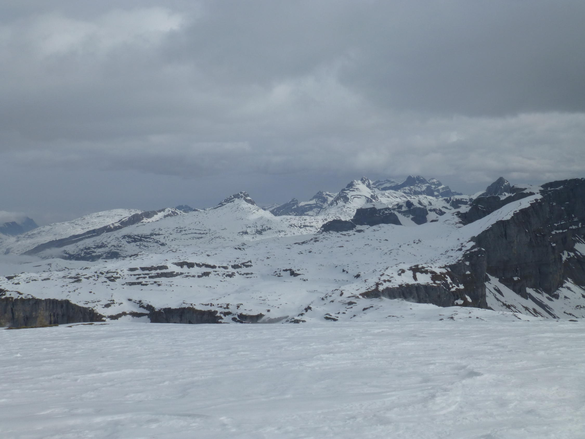 Das Wetter musste am Morgen noch ausgenutzt werden bevor die Störung ankommt. Der Schnee war weich bis zuoberst sogar glasig hart doch sonst noch recht gut, auch in der Abfahrt konnten einige Schwünge gezogen werden. Es waren nicht mehr viele Leute am Berg unterwegs.
