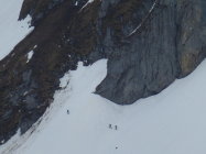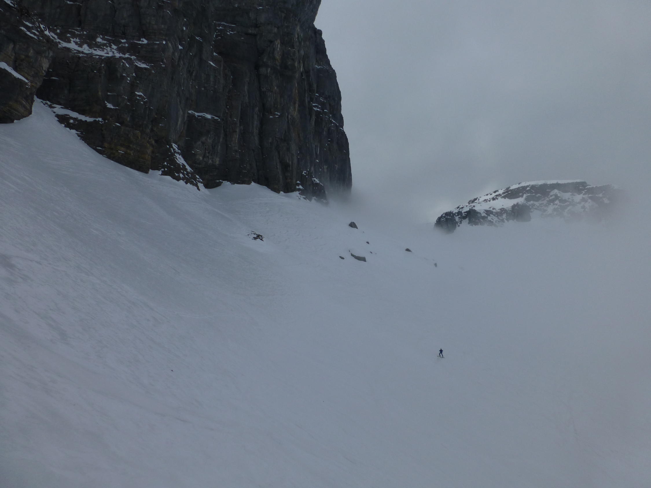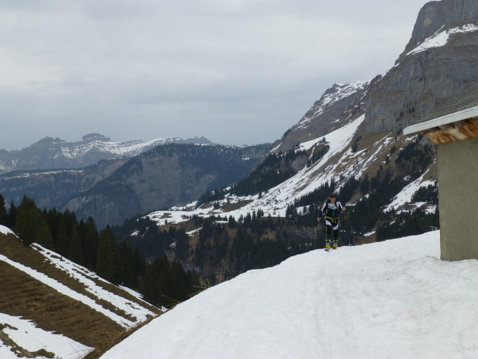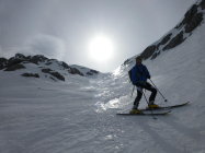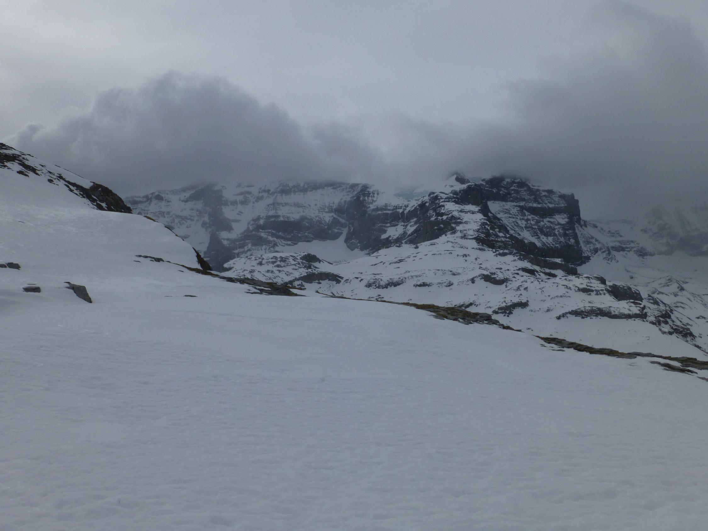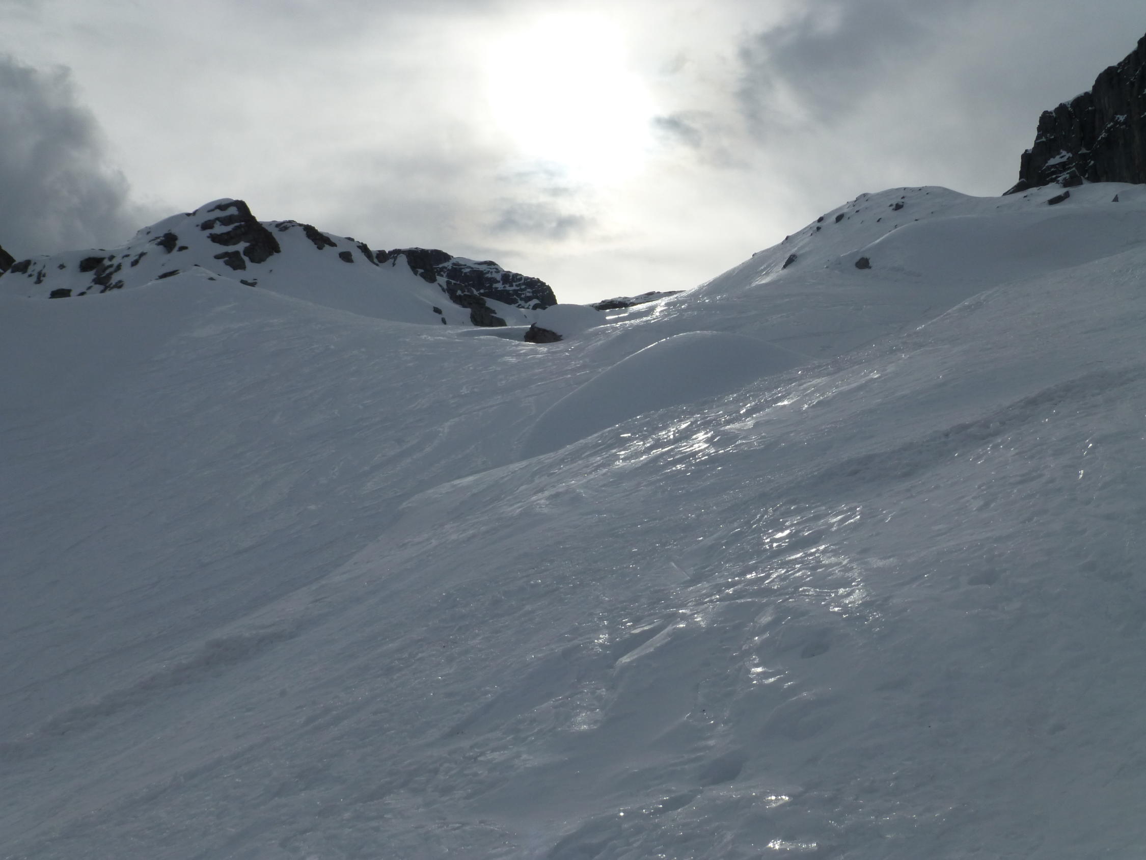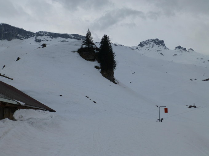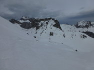 Das Wetter musste am Morgen noch ausgenutzt werden bevor die Störung ankommt. Der Schnee war weich bis zuoberst sogar glasig hart doch sonst noch recht gut, auch in der Abfahrt konnten einige Schwünge gezogen werden. Es waren nicht mehr viele Leute am Berg unterwegs.