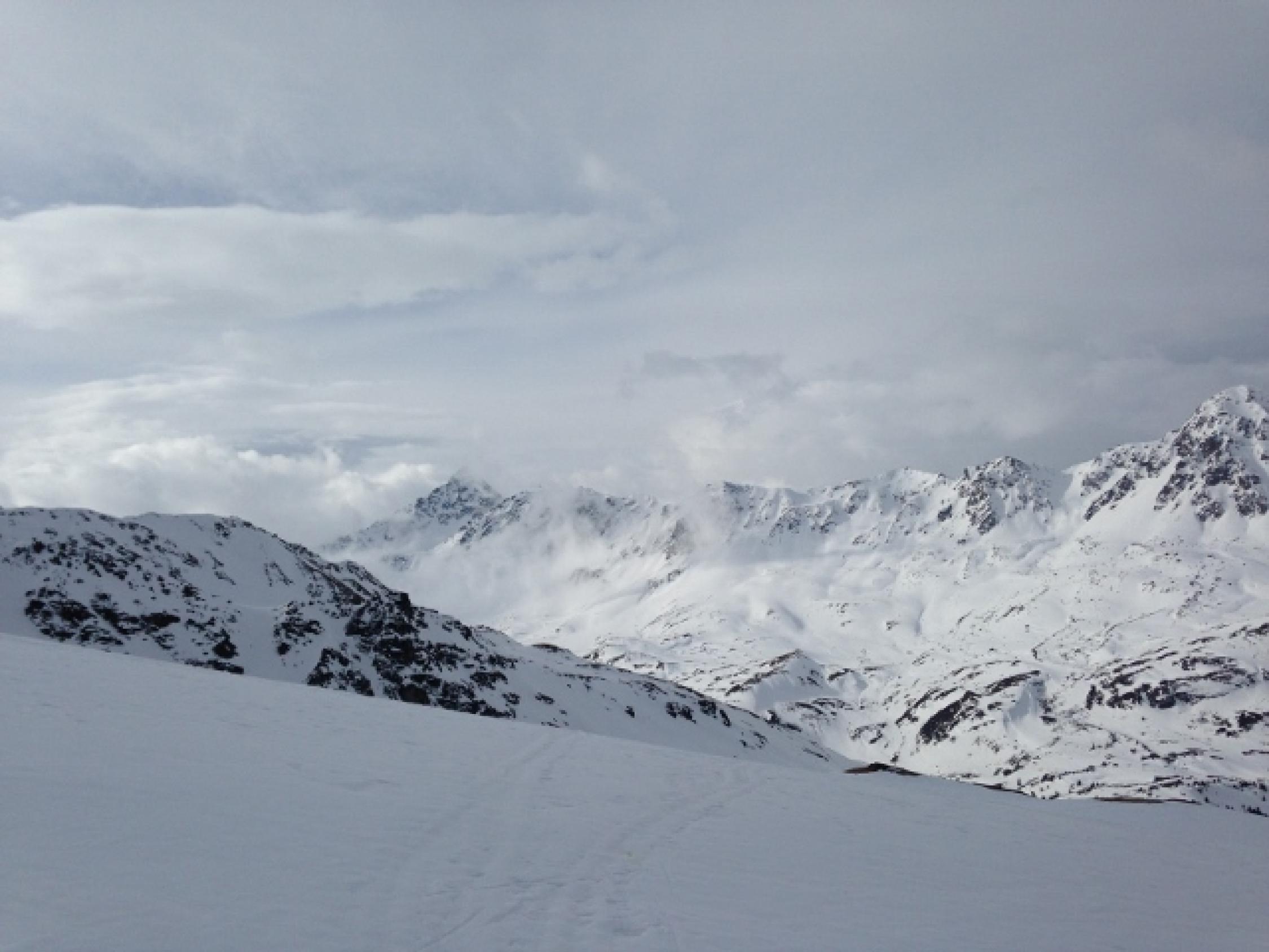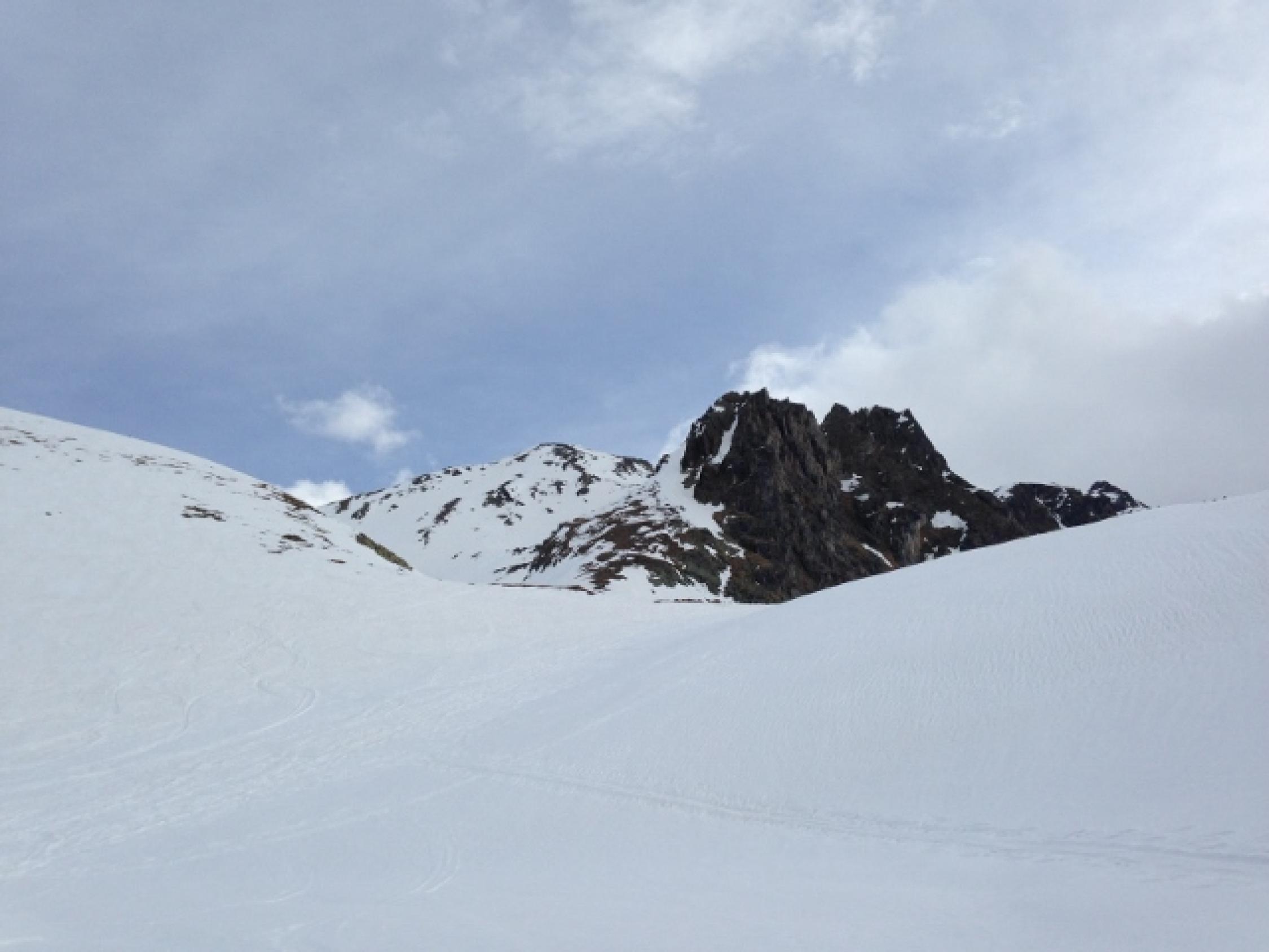 Das Wetter war zeitweise aufreissend mit dem angekündigten Föhn im Osten. Doch als wir den Schlussaufstieg machen wollten, zog es rasch zu, somit entschieden wir zur Abfahrt.