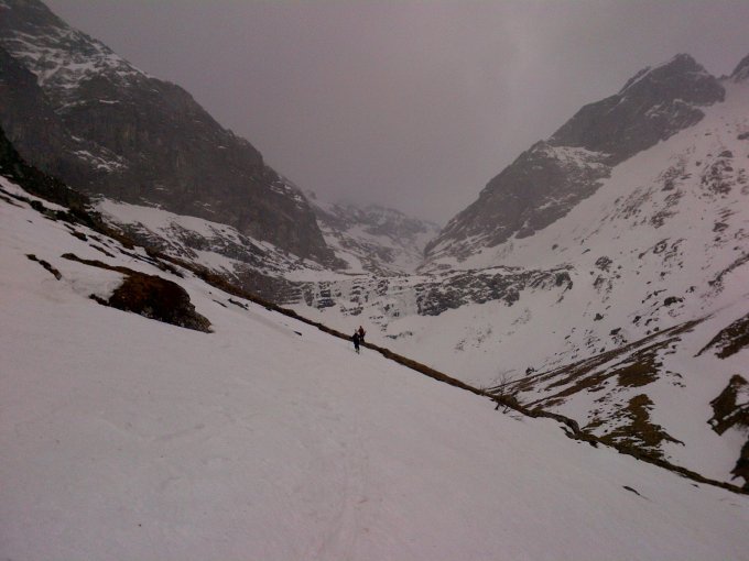Abfahrt im Bachbett noch recht lange möglich, wenn auch immer mal wieder abgeschnallt und getragen werden musste.