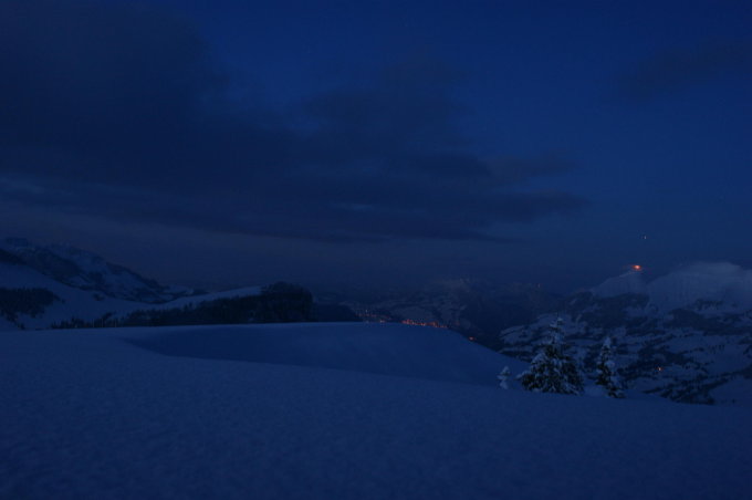 Gipfel windstill. Ich bin Heute um 18:30 gestartet und hatte den Meniggrat für mich alleine. Sehr schöne Abend und Nachtstimmung. Abfahrt mit Stirnlampe etwas gewöhnungsbedürftig aber beim Meniggrat kein Problem. Aufstiegszeit 1h03min. Breite Ski sind bei solchen Verhältnissen von Vorteil.