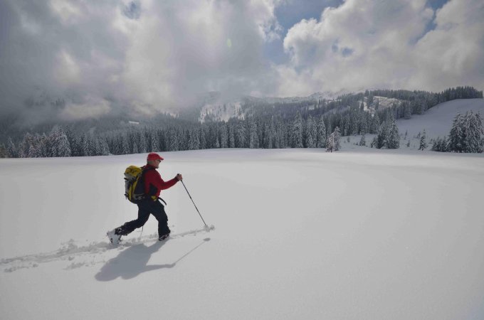 Erstaunlich kalt heute und das Spuren im tiefen Schnee war enorm Kräftezehrend.Nagelfluhkette wurde nicht gemacht, wäre auch sehr kräfteraubend und unberechenbar da einige Hänge vor allem ganz oben viel Wind bekommen haben.