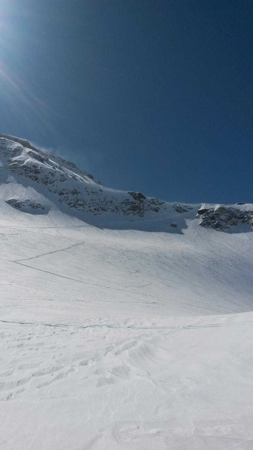 Die Abfahrt war nicht gerade der Genuss, ziemlich gedeckel vom Wind. Zum Aufsulzen hat es nicht gereicht. Pulver ist kaum zu finden.