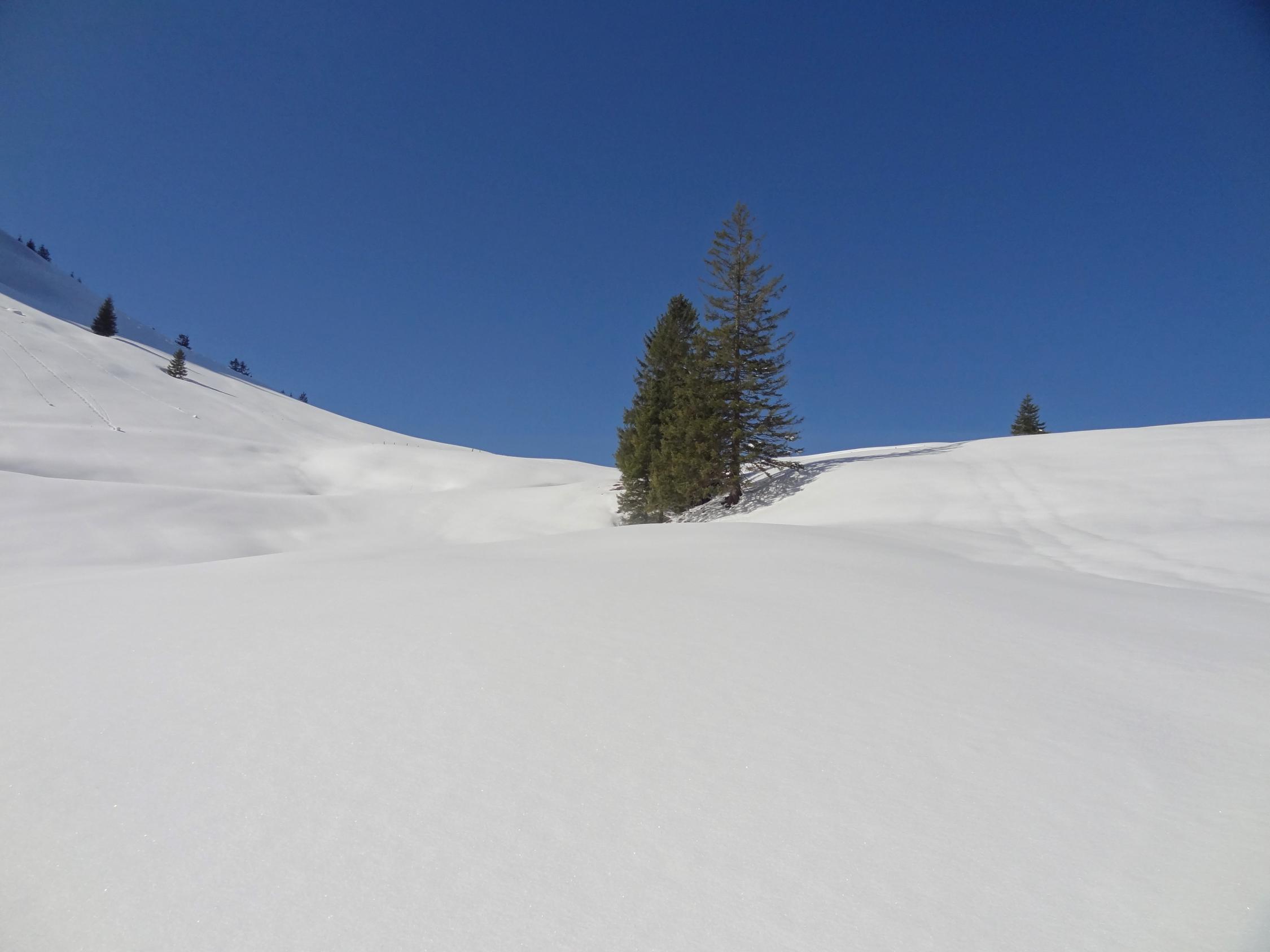 Egal welche Variante man macht, handelt es sich um eine landschaftlich schöne, leichte Tour abseits vom Rummel. Der Trail ist meistens gespurt.