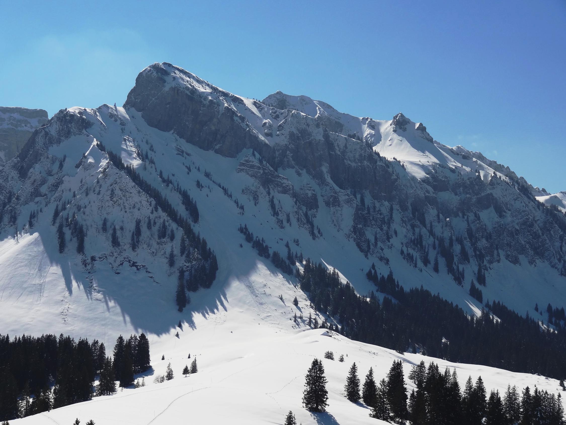 Bei der Sichle, vom Burst her, Schneerutsche bis ins Tal. Am Trogenhorn und Hohgant West Schneerutsche und kleinere Grundlawinen.