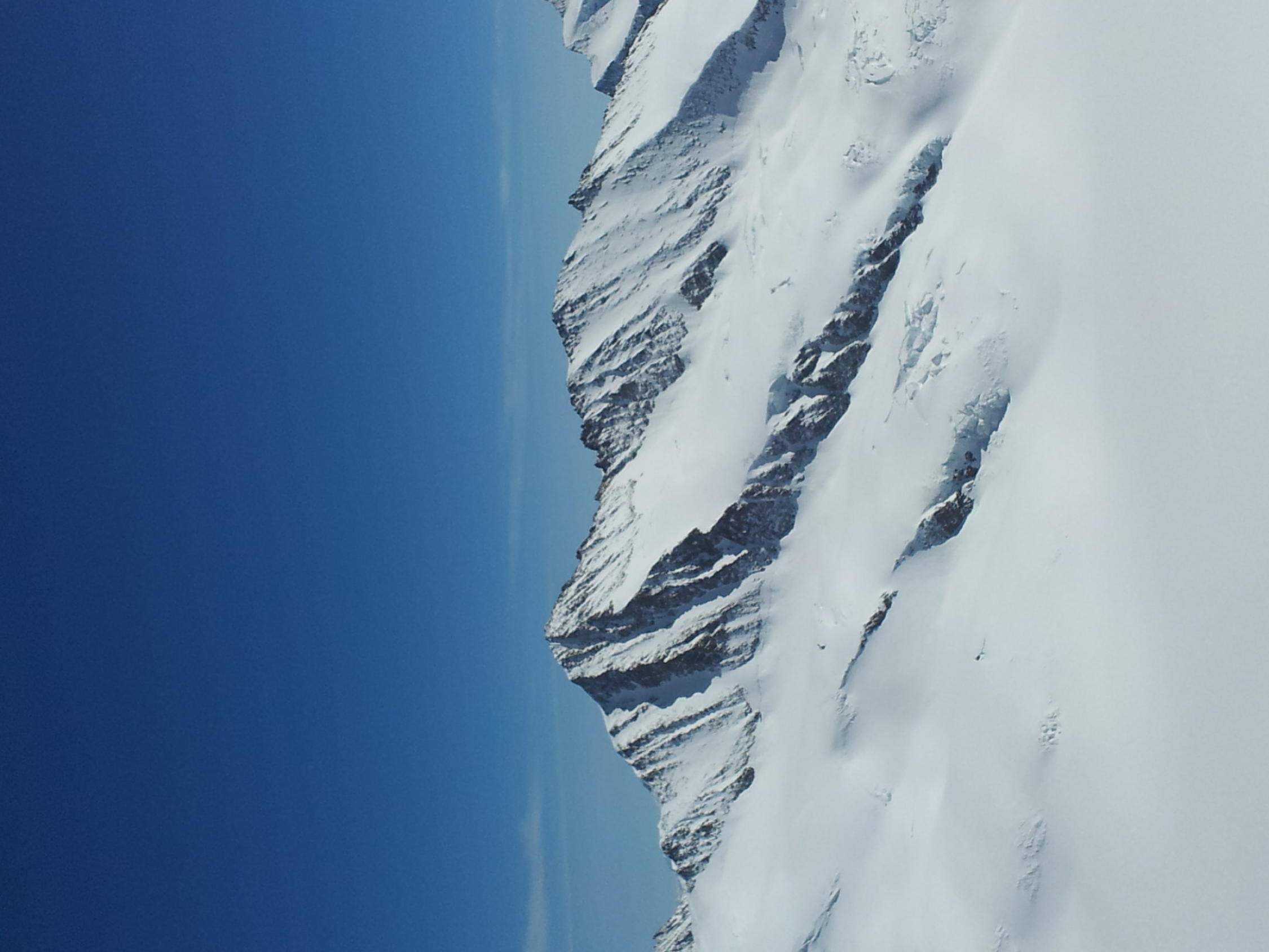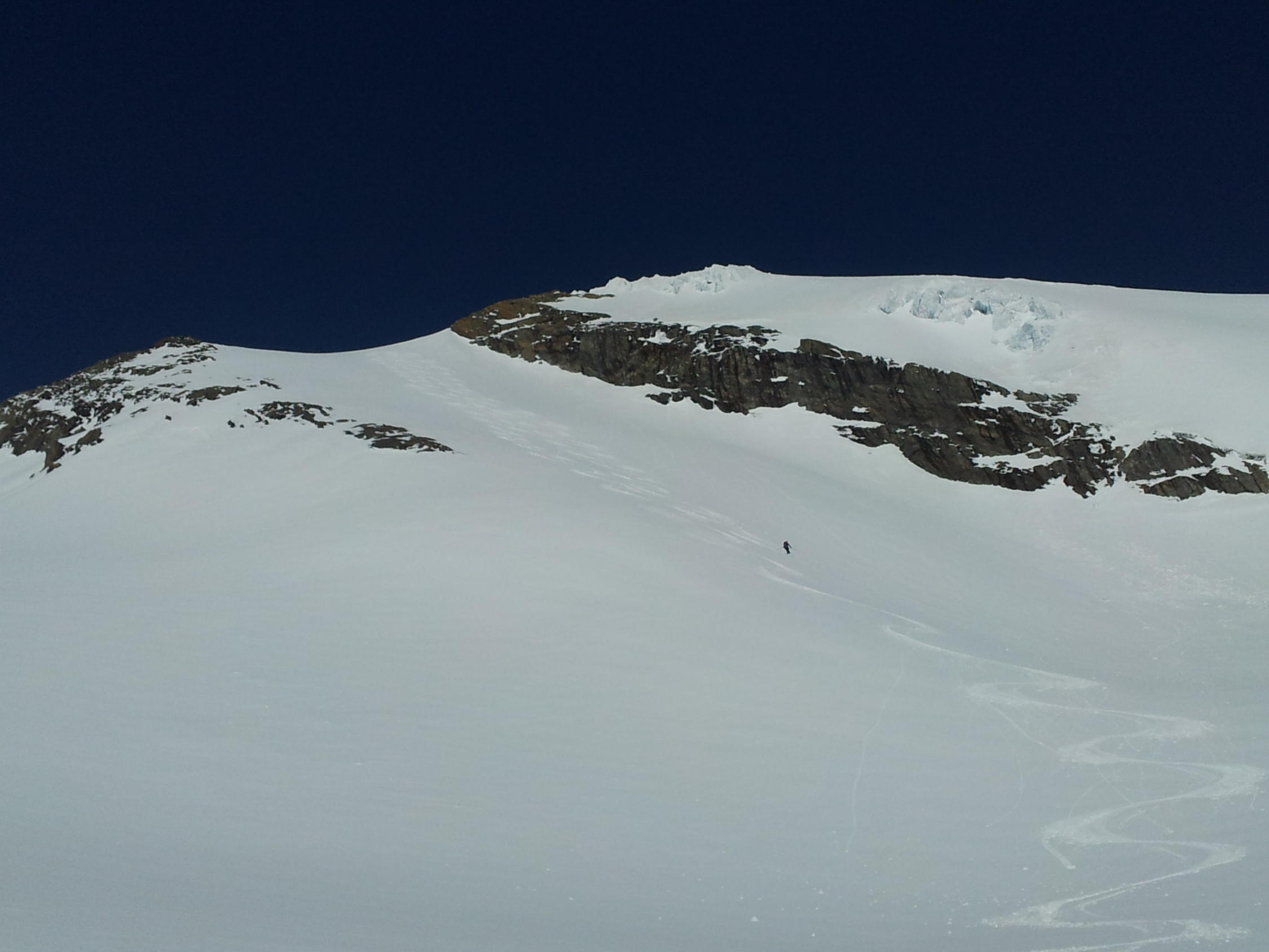 Der Gipfelaufstieg zu Fuss ist mit Blankeis und viel Geröll seeehr Schneearm