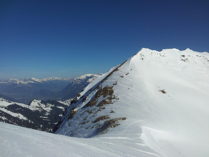 Abfahrt P2322 um 10.30, in den Nordhängen des Hochwang bis Alp Falsch pulver, von der Wannenspitz runter oben noch pulver danach zeitweise fauler Schnee weil zu spät dran