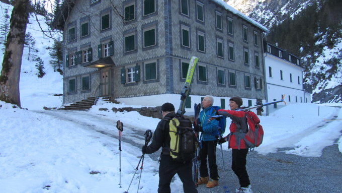 Bis Bad Rothenbrunnen Weg aper. Von da ab Schnee. Immer wieder kleinere apere Stellen bis kurz vor der Gaden Alpe. Schnee morgens gut durchgefroren. Auf dem Diesner Gschröf Pulver und teilweise windgepresster Schnee. Im Metzgertobel Pulver und weiter unten nasser Schnee. Gut fahrbar. Ab Metzgertobelalpe immer wieder apere Stellen auf dem langen Weg zurück zum Parkplatz.