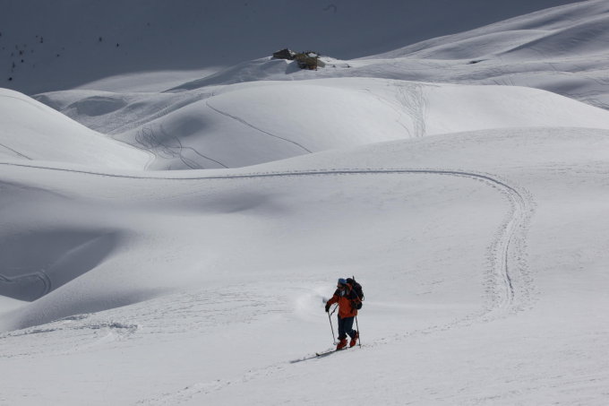 Bleibt gut, nach größeren Neuschneemengen jedoch unbedingt neu zu beurteilen. Bei Erwärmung auf dem Rückweg rechtzeitig die Südflanke des Lattenhorns queren.