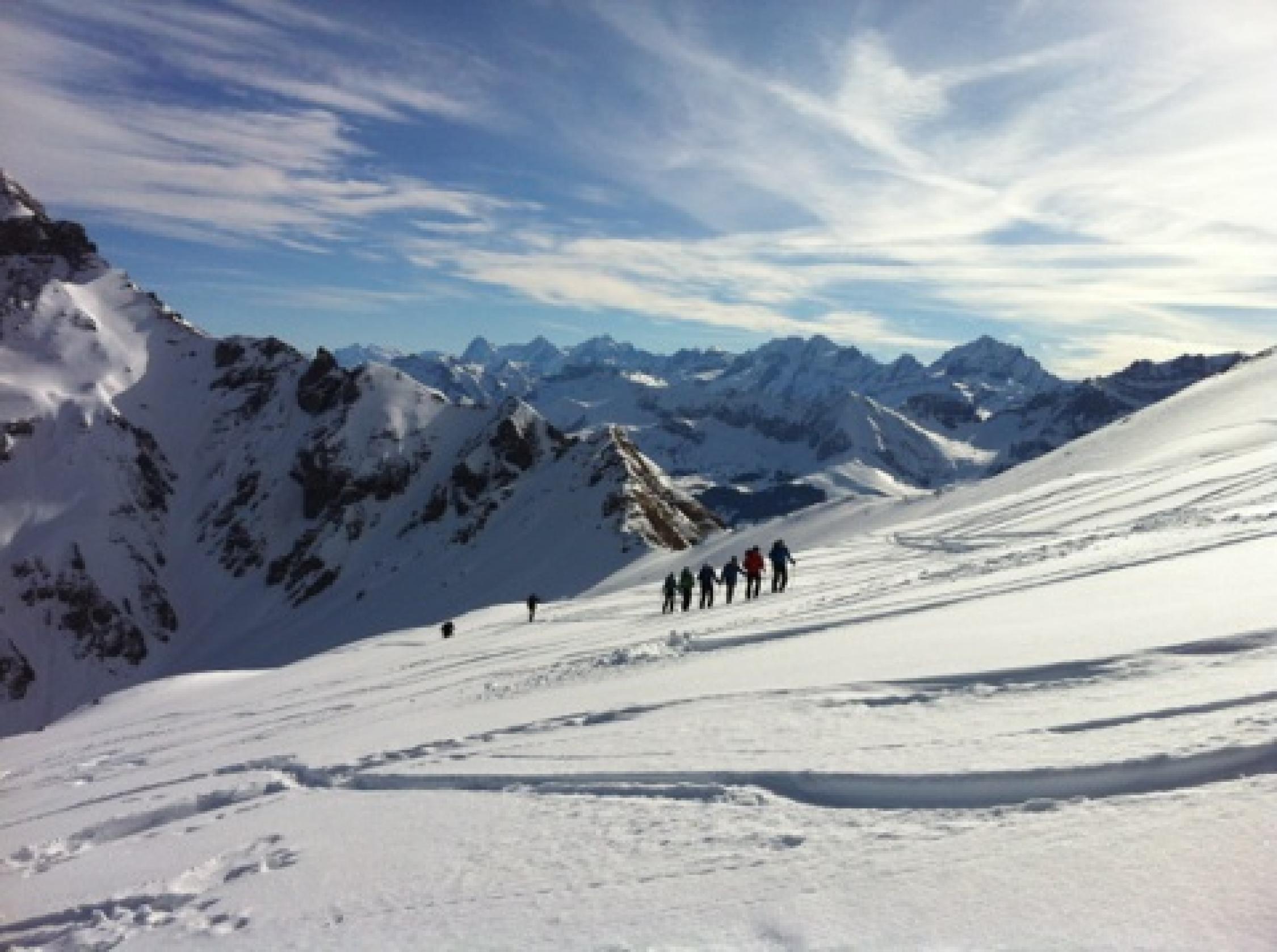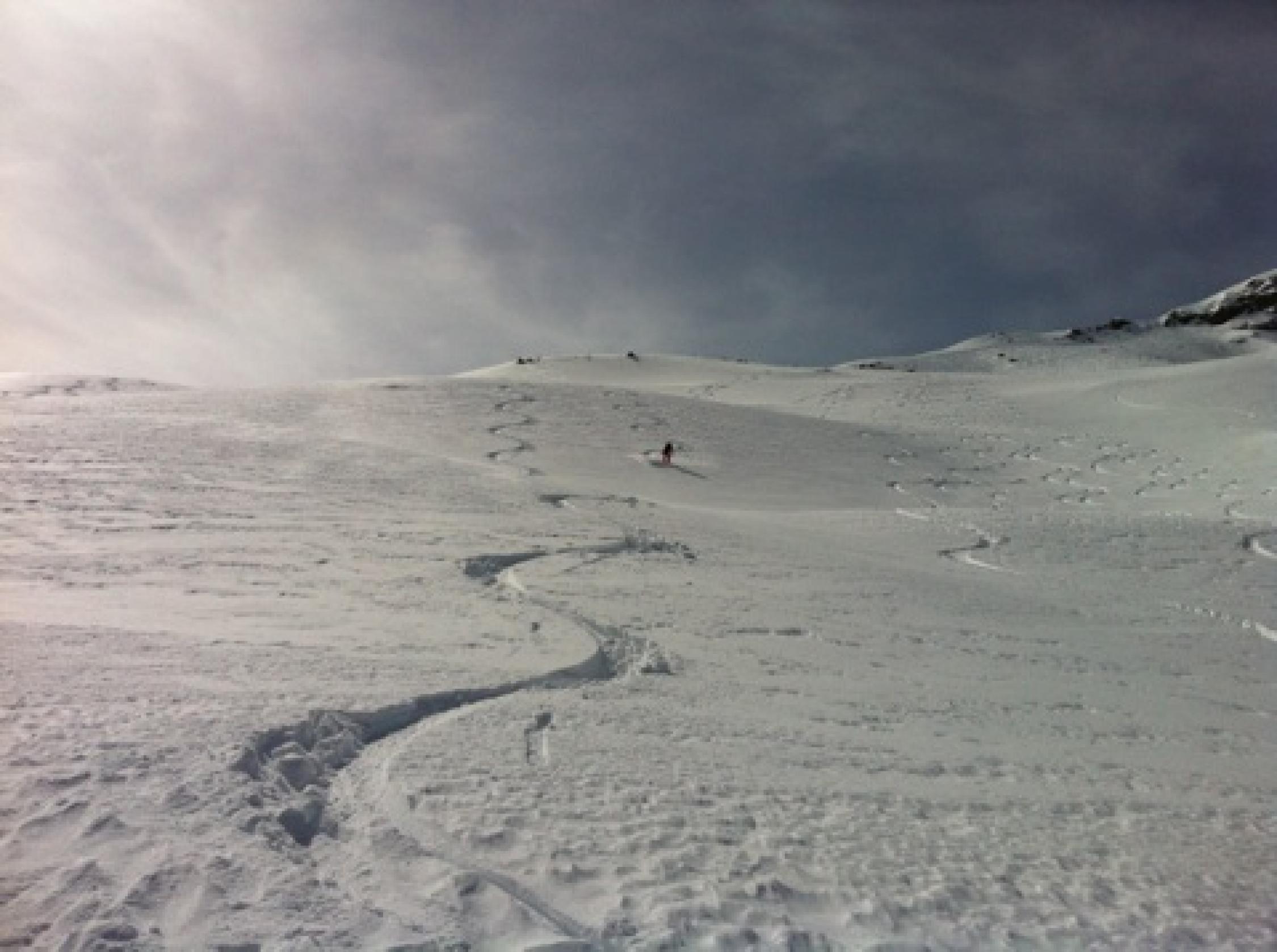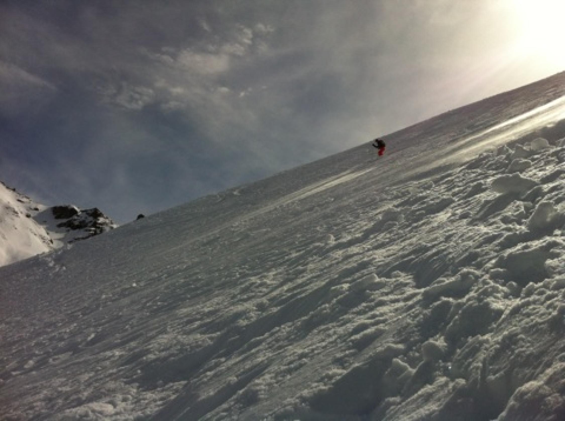 Die Aufstiegsspur geht nicht durch den Birengraben sondern links den Rücken hoch, deshalb auch einige Spitzkehren. Aufstieg problemlos, z.T leicht rutschig. Harscheisen können hilfreich sein. An der Schlüsselstelle haben die meisten die Skis getragen. Gipfelhang bis Schlüsselstelle nicht schön aber fahrbar. Von der Schlüsselstelle bis zum Talboden alle Arten von Pulver (leicht bis schwer). Es hatte immer noch Platz um eigene Spuren zu ziehen :-). Auf dem Talboden bis zum Auto Bruchharsch bis bereits leichter Sulz
